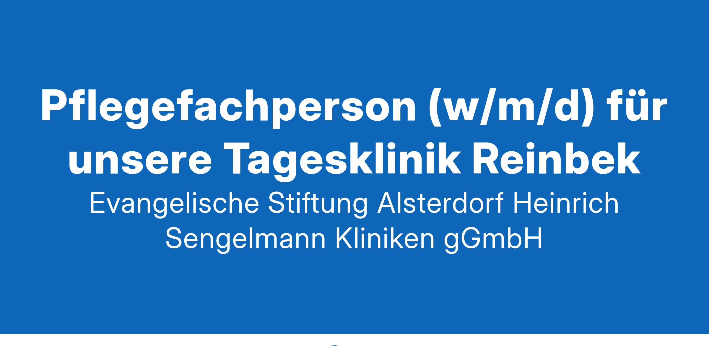„Hohe Arbeitszufriedenheit und eine gute Atmosphäre: Das ist uns wichtig.“Die Heinrich Sengelmann Kliniken für Psychiatrie, Psychotherapie und Psychosomatik bieten stationäre, tagesklinische und ambulante Behandlungen für Patient*innen der Hansestadt Hamburg, Schleswig Holstein sowie überregional. Wir, die Heinrich Sengelmann Kliniken, gehören im norddeutschen Raum zu den führenden Kliniken in den Bereichen Psychiatrie, Psychotherapie und Psychosomatik. Für unsere Tagesklinik Reinbek suchen wir Verstärkung! Wenn du deine fachliche Expertise und von Wertschätzung geprägte Arbeitsweise in einem gemeinnützigen Umfeld einbringen möchtest, bist du bei uns genau richtig. Pflegefachperson (w/m/d) für unsere Tagesklinik Reinbek Arbeitsumfeld In unserer Tagesklinik in Reinbek behandeln wir Menschen mit seelischen Störungen und unterstützen sie durch unsere psychiatrischen, psychotherapeutischen und psychosozialen Behandlungsangebote. Du hast Freude an der Arbeit in einem interprofessionellen Team und dir ist patientenorientiertes Arbeiten wichtig? Wir freuen uns auf deine Bewerbung! Wir bieten