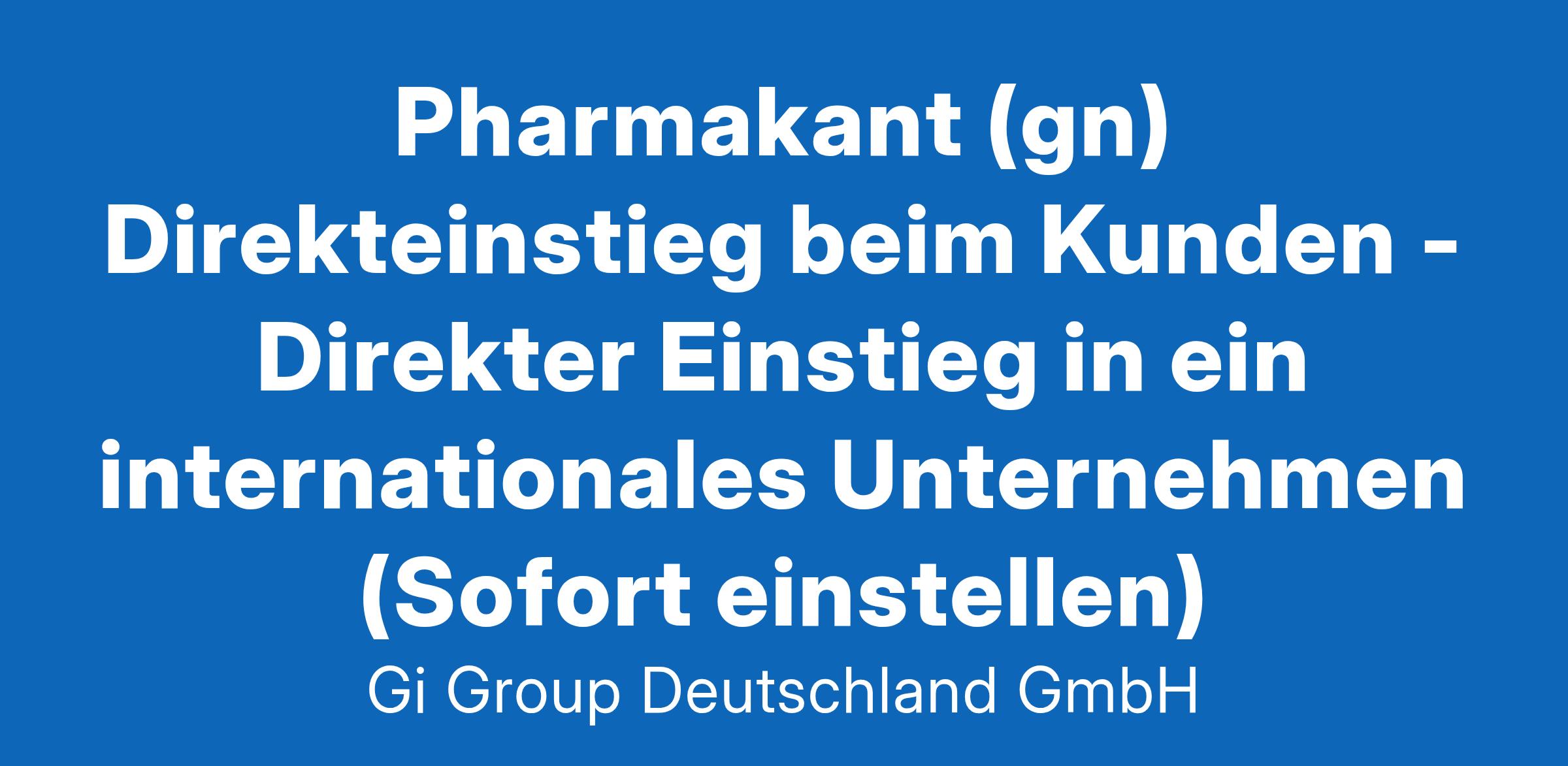Pharmakant (gn) Direkteinstieg beim Kunden - Direkter Einstieg in ein internationales Unternehmen (Sofort einstellen)