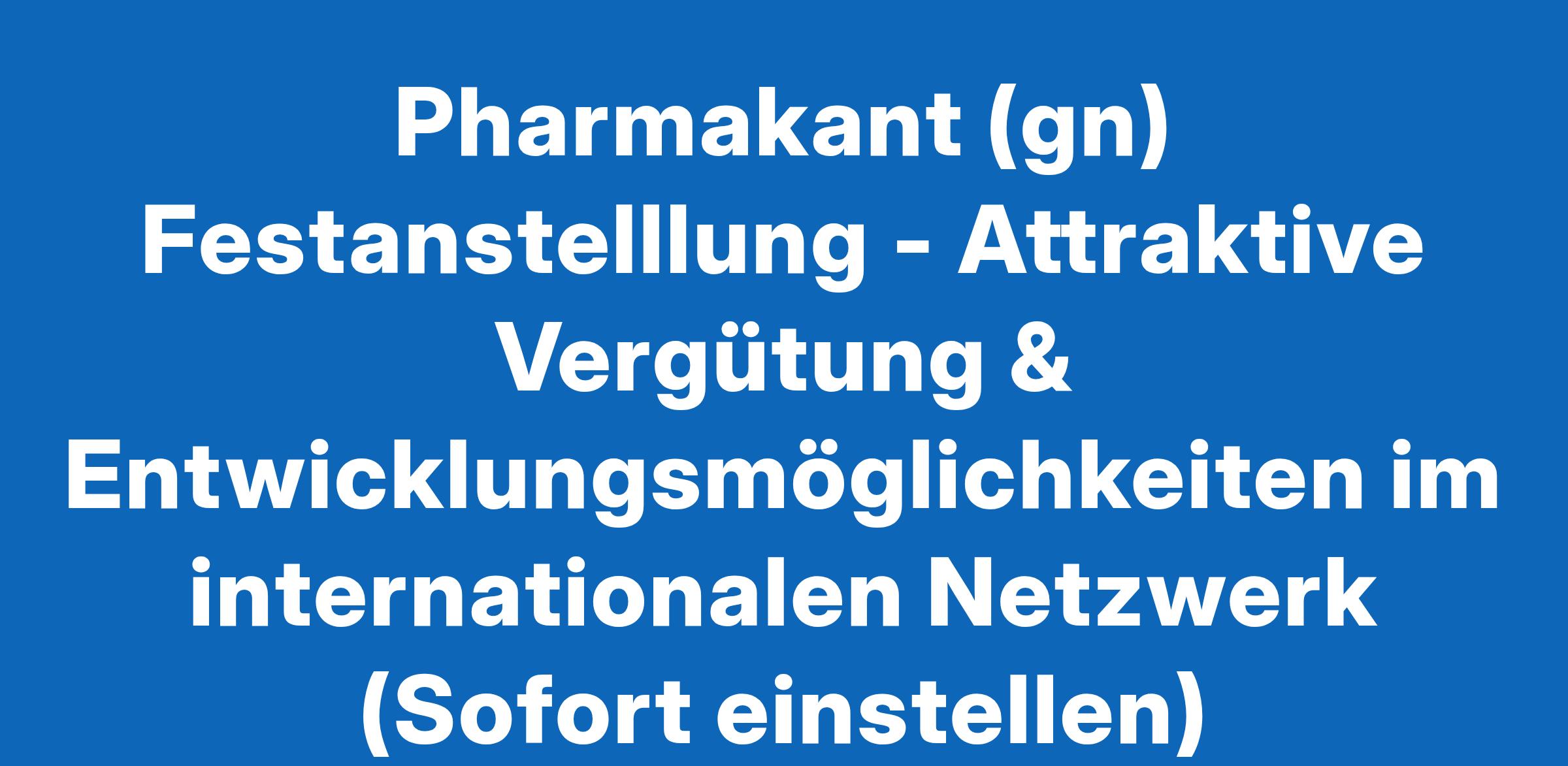 Pharmakant (gn) Festanstelllung - Attraktive Vergütung & Entwicklungsmöglichkeiten im internationalen Netzwerk (Sofort einstellen)