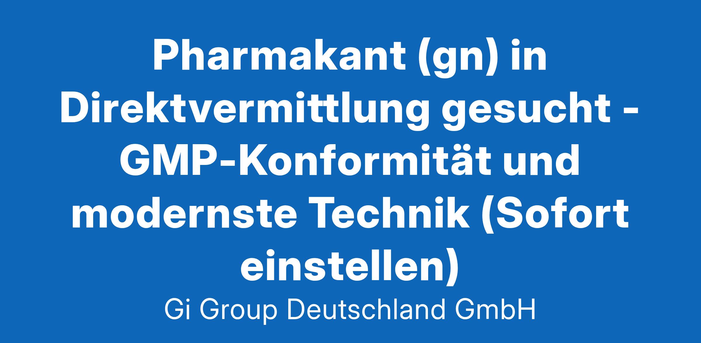 Pharmakant (gn) in Direktvermittlung gesucht - GMP-Konformität und modernste Technik (Sofort einstellen)