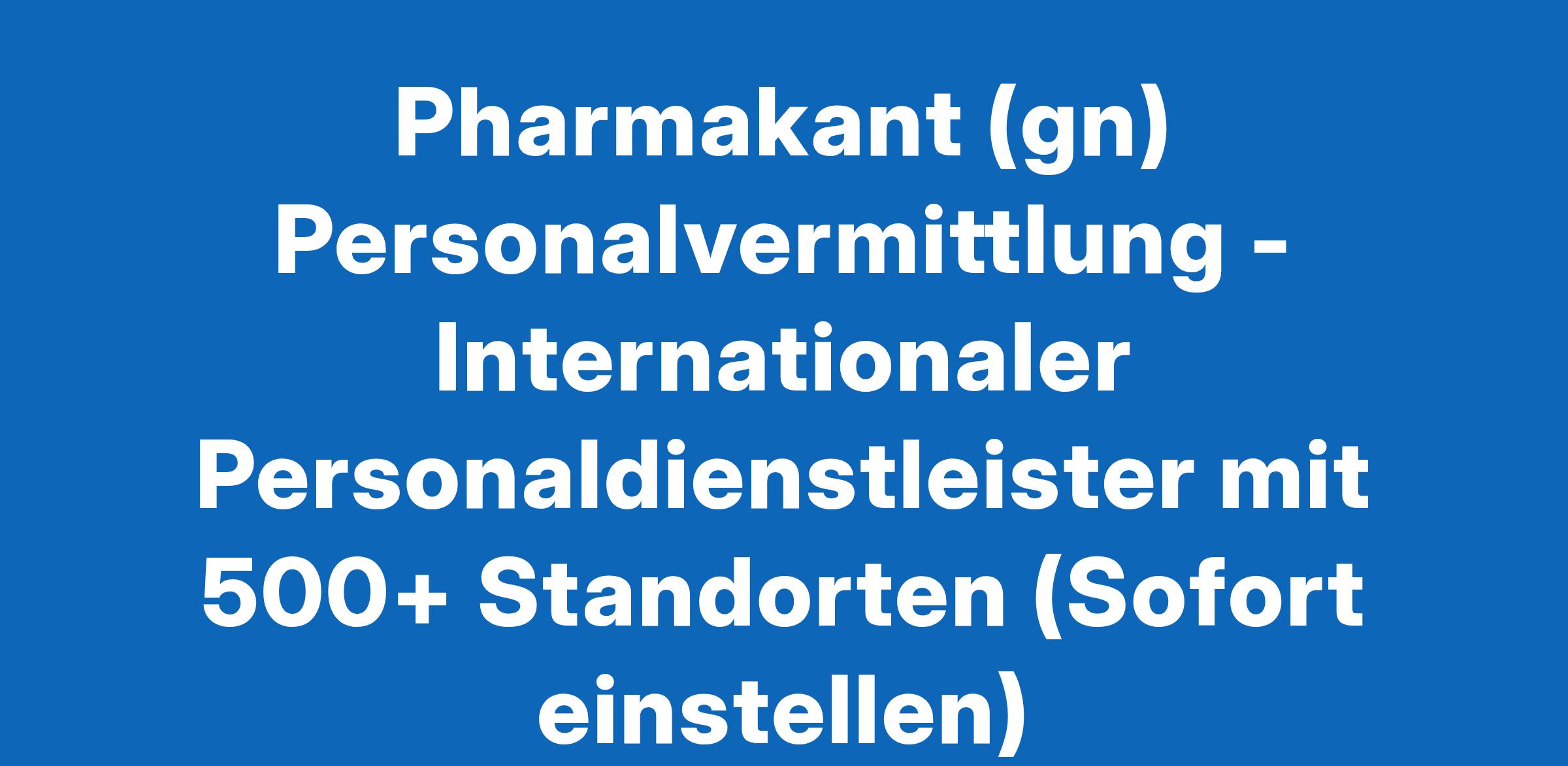 Pharmakant (gn) Personalvermittlung - Internationaler Personaldienstleister mit 500+ Standorten (Sofort einstellen)