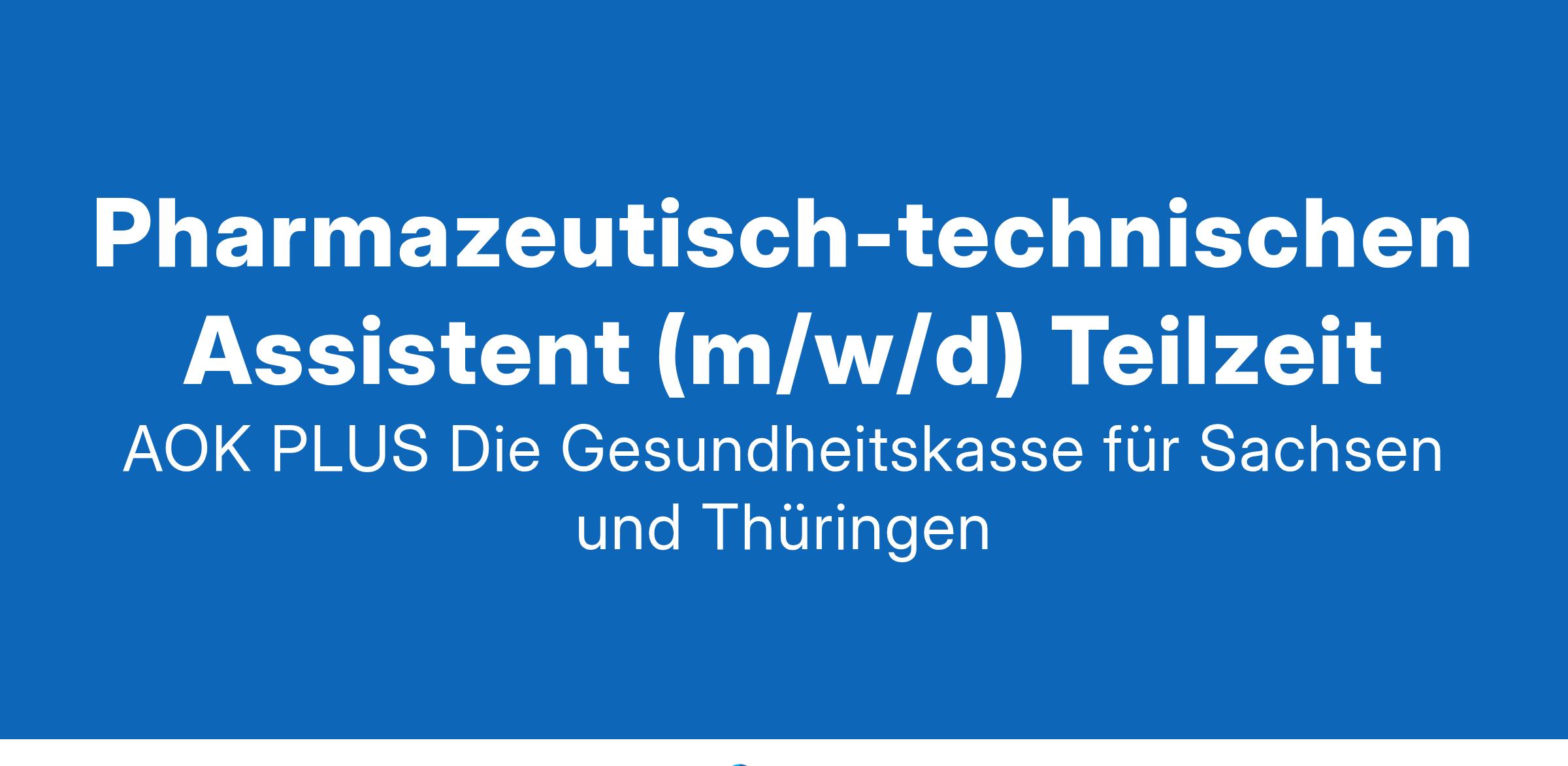 Willkommen bei der Gesundheitskasse - einer starken Gemeinschaft aus vielen unterschiedlichen Menschen! Unsere individuellen Stärken setzen wir zusammen dafür ein, dass unsere Versicherten gesund bleiben und werden. Dabei entwickeln wir uns persönlich immer weiter und unterstützen uns gegenseitig auf diesem Weg. Weil für uns gilt: Besser gemeinsam weiterkommen. Für unseren Standort Leipzig suchen wir in Teilzeit (30 Wochenstunden) befristet für zwei Jahre einen Pharmazeutisch-technischen Assistenten (m/w/d) So sieht ihre Mission Gesundheit bei uns aus: Fragen zur Verordnungsfähigkeit von Arzneimitteln? - Schnell in die Apotheke!