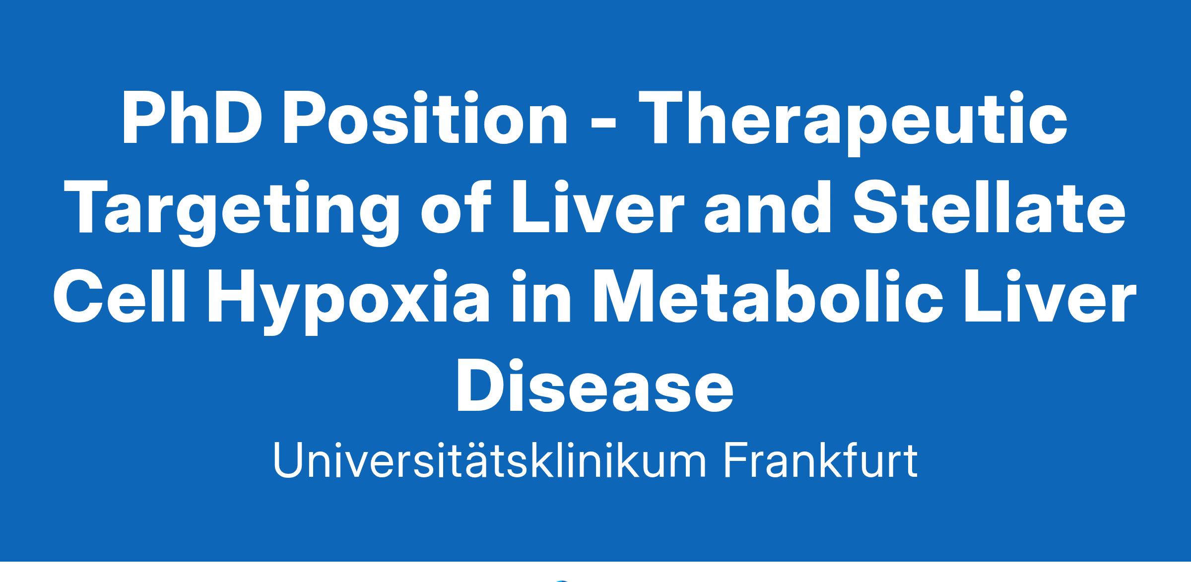 "Knowledge becomes health" - we are filling this motto with life every day, developing new ideas and improv-ing old-established knowledge. The University Hospital Frankfurt has existed since 1914. Our around 8,500 employees contribute with their skills and knowledge to the 33 specialist clinics, theoretical clinical institutes, and administrative departments. The close connection of health care with research and teaching, as well as a climate of collegiality, internationality, and cross-professional cooperation characterize the university hospital.PhD Position - Therapeutic Targeting of Liver and Stellate Cell Hypoxia in Metabolic Liver Disease(We are targeting applicants of all genders)