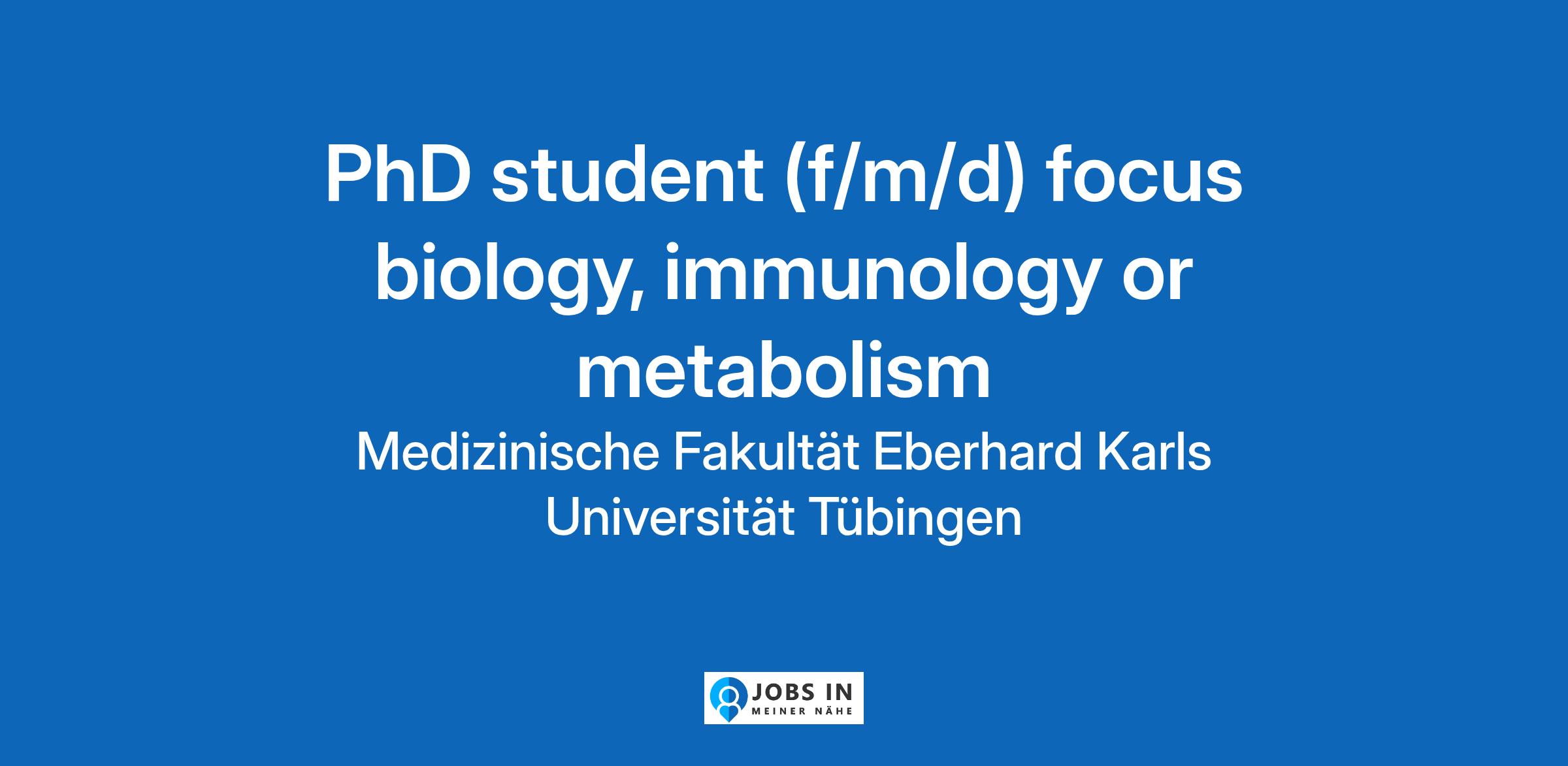 The Faculty of Medicine is one of the four founding faculties of the Eberhard Karls University of Tübingen. With its non-clinical facilities as well as its research and teaching area corresponding to the organisational units of the University Hospital, it is one of the largest medical training an... Self motivated;Translation;Cellular;Universities;Metabolism;Biology;Inflammation;Immunology;Communication;Creative work;Molecular;Liver Disease;Energy;Cell Biology;Projects;Science Original Stellenanzeige auf StepStone.de – Jetzt Jobagent bei StepStone einrichten und Traumjob finden! https://bit.ly/2KOagYD Mehr Informationen zu Arbeitgebern, Gehaltsdaten und Karrieretipps finden Sie auf StepStone.de