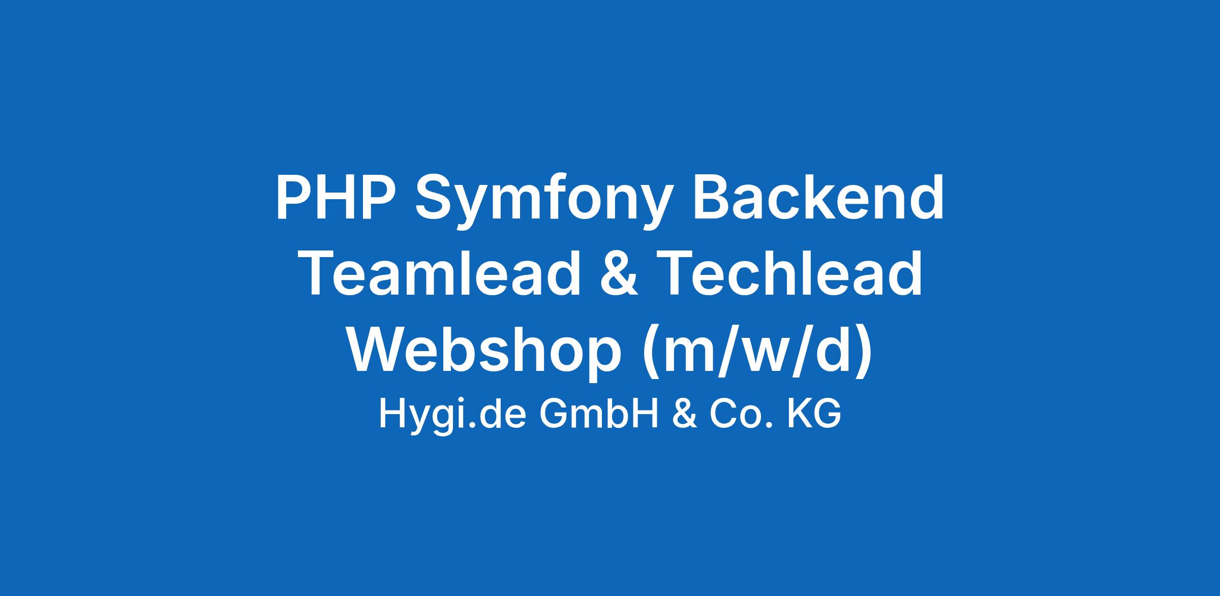 PHP SYMFONY BACKEND TEAMLEAD & TECHLEAD WEBSHOP (m/w/d)