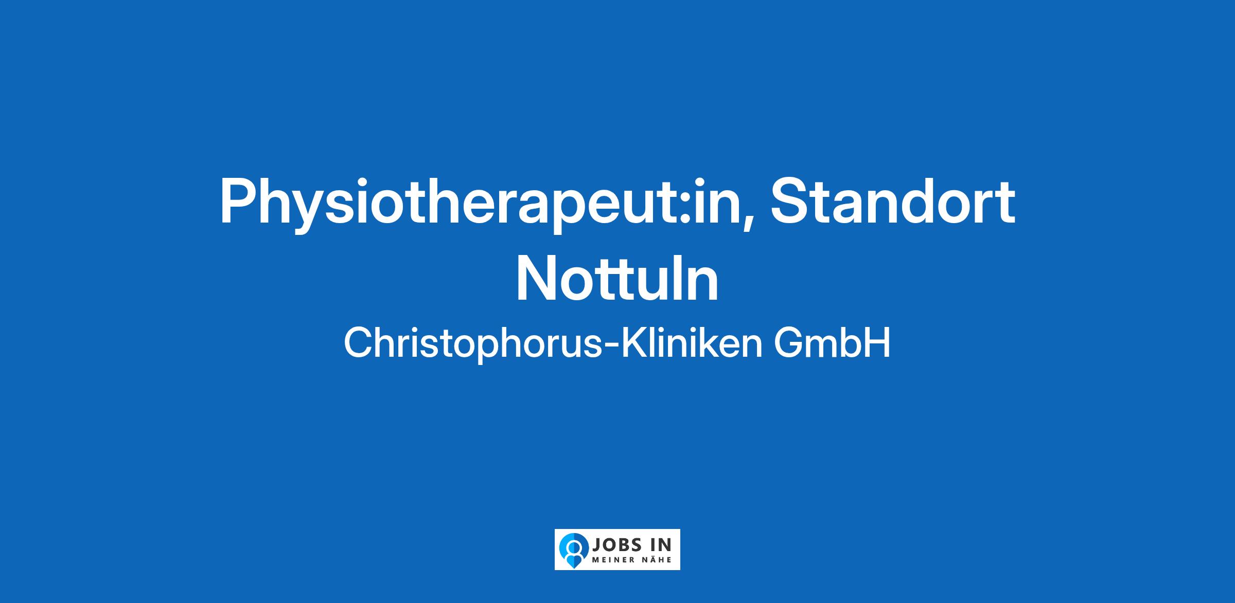 Die Christophorus Therapie und Gesundheit GmbH ist ein moderner und leistungsfähiger Therapiedienstleister im Münsterland an den Standorten Coesfeld, Dülmen und Nottuln. In den Fachbereichen Physiotherapie, Ergotherapie, Logopädie und Prävention/Reha sind insgesamt über 60 Mitarbeitende tätig. Als 100%ige Unternehmenstochter der Christophorus-Kliniken GmbH bildet die stationäre therapeutische Versorgung der Klinikstandorte einen Tätigkeitsschwerpunkt. Zudem besteht ein stetig wachsendes ambulantes Angebot therapeutischer, sowie präventiver und rehabilitativer Leistungen. Für unser Team Physiotherapie am Standort Nottuln suchen wir neue Kolleg:innen!