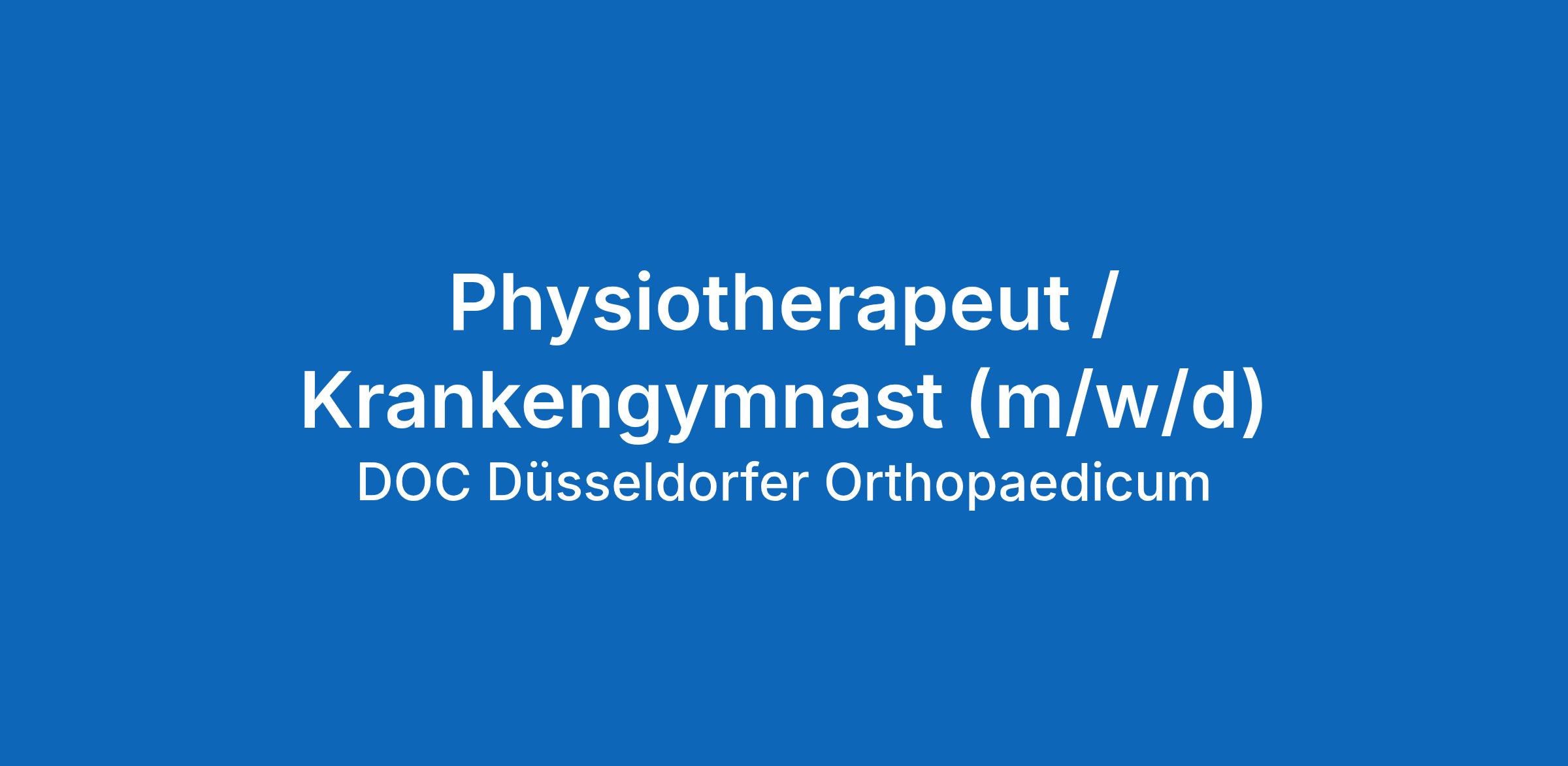 Physiotherapeut / Krankengymnast (m/w/d) – Vollzeit / Teilzeit – Düsseldorf Orthopädie | Trainingstherapie | überdurchschnittliche Vergütung