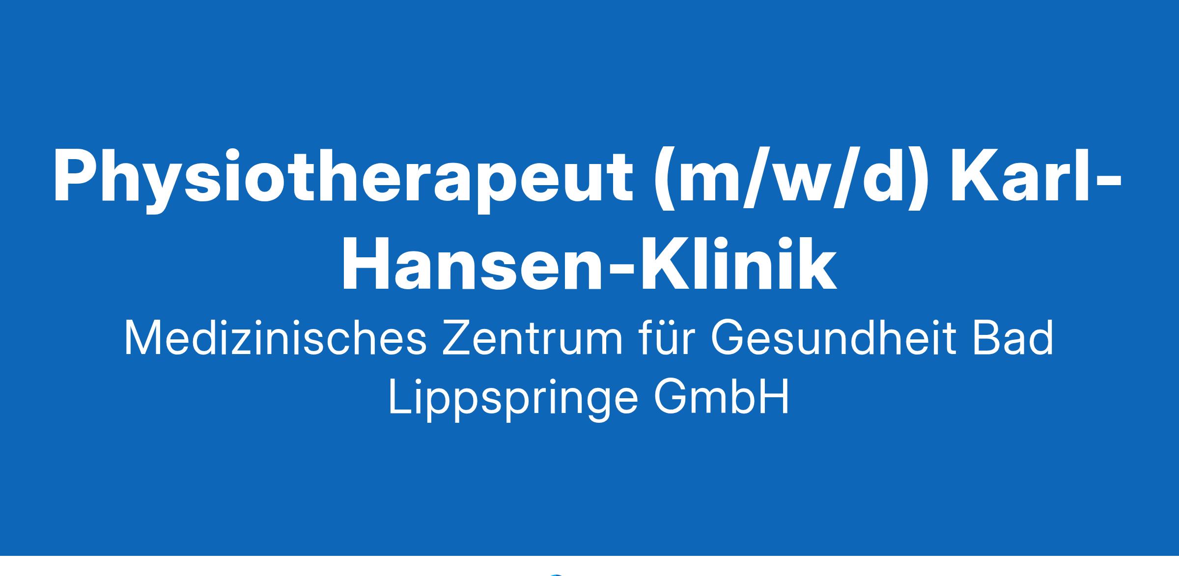 Physiotherapeut (m/w/d) Karl-Hansen-Klinik