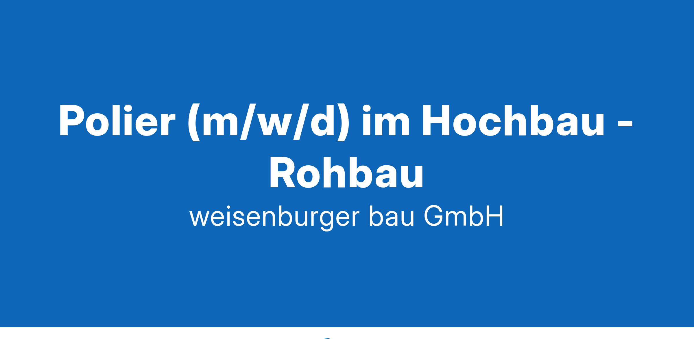 Polier (m/w/d) im Hochbau - Rohbau»Wir bauen Zukunft!« - unter diesem Slogan entwickelt sich weisenburger nachhaltig: 1955 gegründet, umfasst die weisenburger-Gruppe erfolgreiche Unternehmen im Bau- und Immobilienbereich. Mit mehr als 650 Mitarbeitern wird eine Gesamtleistung von 500 Mio. EUR erreicht. weisenburger plant und errichtet Wohngebäude und Reihenhäuser, Pflegeeinrichtungen und Hotels sowie Büro- und Gewerbeflächen. Jährlich werden über 3.000 Einheiten fertiggestellt. Junge Start-ups bereichern die Gruppe um innovative und markterweiternde Produkte. Die weisenburger-Gruppe ist an 20 Standorten vertreten.