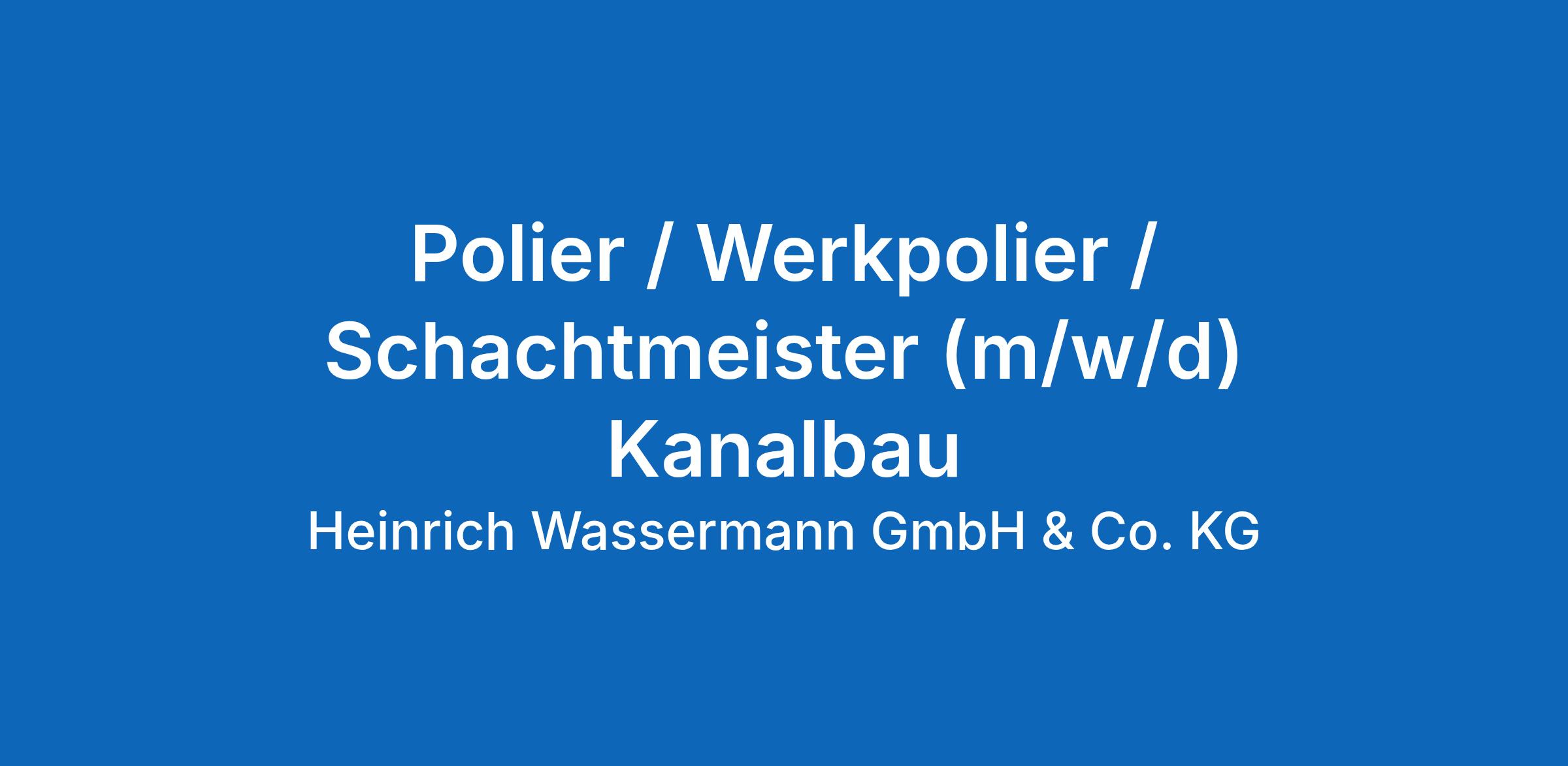 Unsere Baustellen sind das Herzstück unseres Unternehmens. Als Polier / Werkpolier / Schachtmeister (m/w/d) bei Heinrich Wassermann tragen Sie täglich dazu bei, unsere anspruchsvollen Aufgaben im Sinne unserer Kunden erfolgreich zu erfüllen.