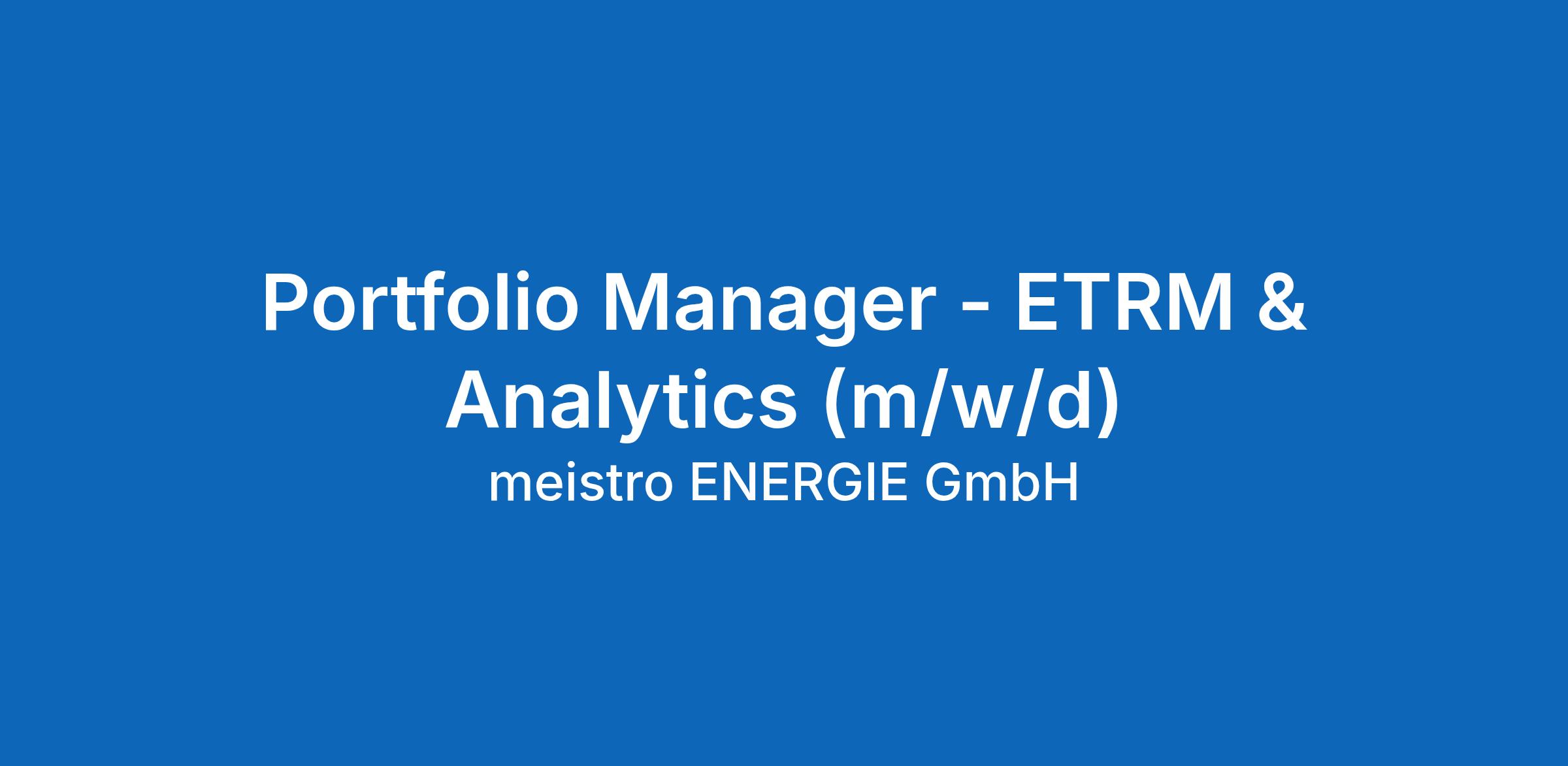 View job here Portfolio Manager – ETRM & Analytics (m/w/d)