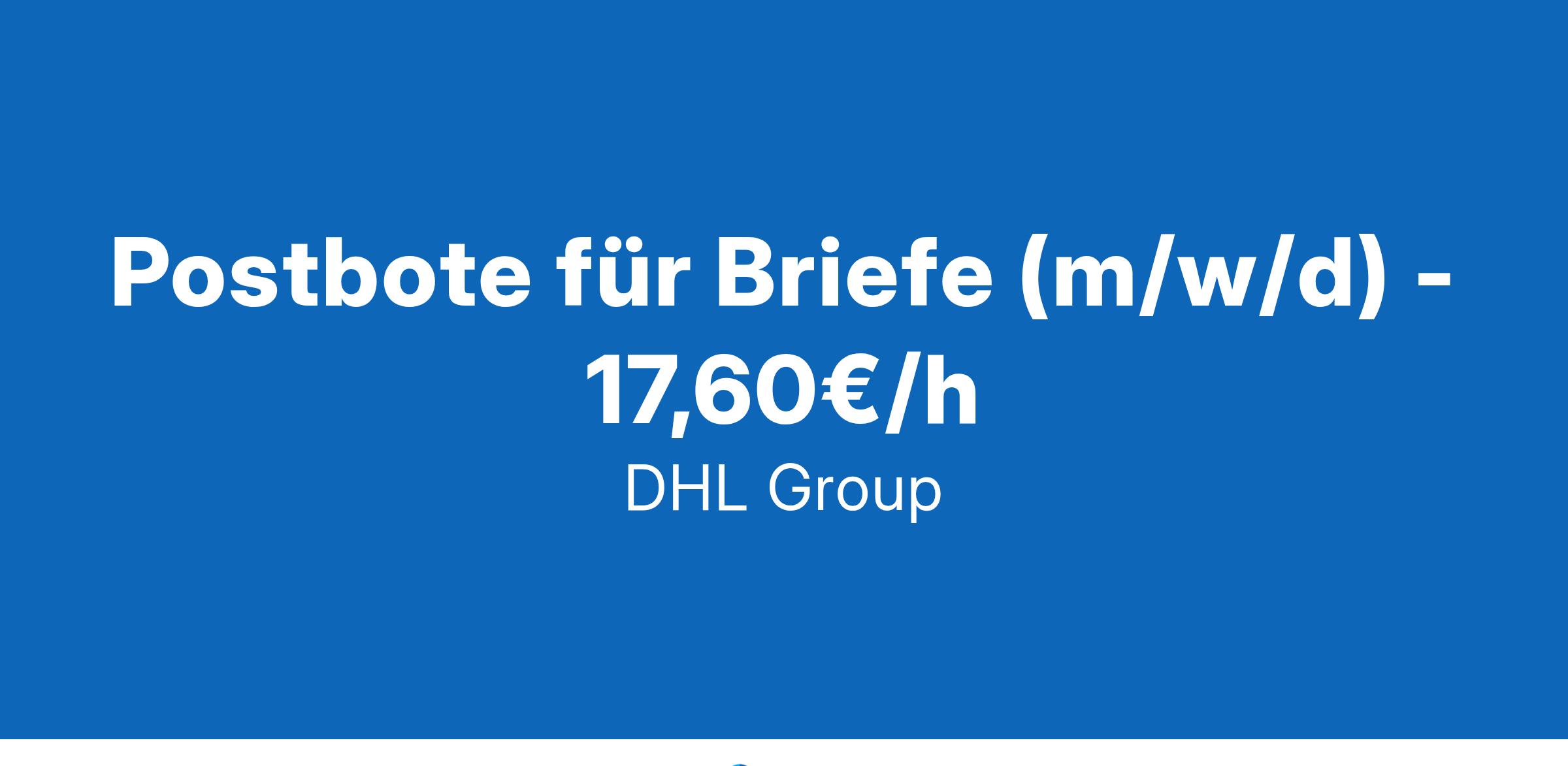 Postbote für Briefe (m/w/d) - 17,60€/h Werde Postbote für Pakete und Briefe in Leverkusen Was wir bieten 17,60 € Tarif-Stundenlohn inkl. 50% Weihnachtsgeld und regionale Arbeitsmarktzulage +weitere 50% Weihnachtsgeld im November +332 € Urlaubsgeld im Juli ab dem 2. Jahr Du kannst sofort befristet in Vollzeit starten, 38,5 Stunden/Woche Möglichkeit der Auszahlung von Überstunden Ein krisensicherer Arbeitsplatz, garantierte Gehaltssteigerung gemäß Tarifvertrag und pünktliche Gehaltszahlungen Kostenlose Bereitstellung von hochwertiger Arbeitskleidung Ausführliche Einweisung (bezahlt) – wir machen dich fit für die Zustellung Entwicklungsmöglichkeiten (bspw. Standortleiter) bei guten Leistungen und offenen Positionen möglich Attraktive Mitarbeiterangebote wie z.B. arbeitgeberfinanzierte betriebliche Altersvorsorge, Fahrradleasing, Rabatte bei Mobilfunkanbietern, etc. Was wir bieten Deine Aufgaben als Postbote bei uns Zustellung von Brief- und Paketsendungen mit zur Verfügung gestellten Hilfsmitteln Auslieferung an 5 Werktagen (zwischen Montag und Samstag) Sendungen im Durchschnitt unter 10 kg Du fährst mit Deinem Privat Pkw in den Zustellbezirk, daher brauchst Du einen Führerschein Zustellung mit dem Fahrrad Was du als Zusteller bietest Du darfst einen Pkw fahren Du kannst dich auf Deutsch unterhalten Du bist wetterfest und kannst gut anpacken Du bist zuverlässig und hängst dich rein Werde Postbote bei Deutsche Post DHL Als Postbote bringst du den Menschen in deinem Bezirk Post- und Paketsendungen. Dabei lässt du dir von keinem Wetter die Laune verderben und bist fünf Werktage pro Woche (zwischen Montag und Samstag) unterwegs. Auch Quereinsteiger oder Studenten sind bei uns herzlich willkommen, denn du zählst, wie du bist! Wir freuen uns auf deine Bewerbung als Fahrer , am besten online!Klicke dazu einfach auf den 'Bewerben'-Button – auch ganz ohne Lebenslauf. MENSCHEN VERBINDEN, LEBEN VERBESSERN #werdeeinervonuns