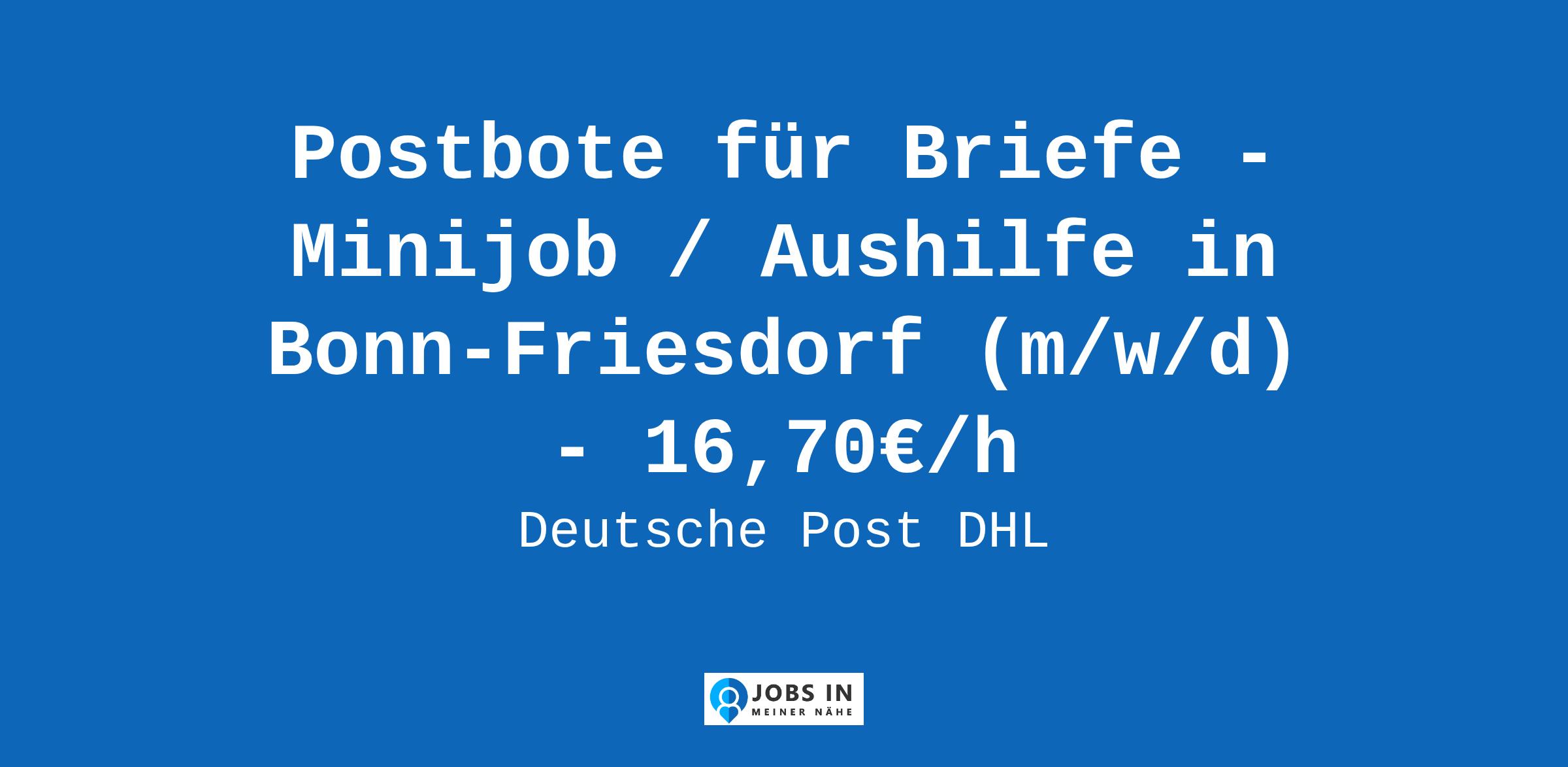 Wir suchen: Postbote für Briefe – Minijob / Aushilfe in Bonn-Friesdorf (m/w/d) - 16,70€/h (Keywords: Job | Vollzeit | Teilzeit | Nebenjob | Aushilfe | Studentenjob | Arbeit | Stelle)]]>