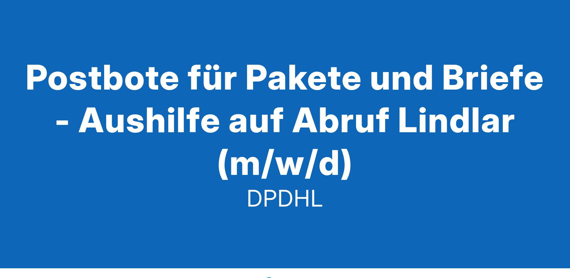 Werde Postbote für Pakete und Briefe in LindlarWas wir bieten16,37 € Tarif-Stundenlohn Ein krisensicherer Arbeitsplatz, garantierte Gehaltssteigerung gemäß Tarifvertrag und pünktliche GehaltszahlungenDu kannst sofort als Abrufkraft startenMöglichkeit der Auszahlung von ÜberstundenKostenlose Bereitstellung von hochwertiger ArbeitskleidungAusführliche Einweisung (bezahlt) – wir machen dich fit für die ZustellungUnbefristete Übernahme und Entwicklungsmöglichkeiten (bspw. Standortleiter) bei guten Leistungen und offenen Positionen möglichAttraktive Mitarbeiterangebote wie z.B. arbeitgeberfinanzierte betriebliche Altersvorsorge, Fahrradleasing, Rabatte bei Mobilfunkanbietern, etc.Deine Aufgaben als Zusteller bei unsZustellung von Brief- und Paketsendungen mit zur Verfügung gestellten HilfsmittelnAuslieferung an bestimmten Tagen (zwischen Montag und Samstag)Sendungen im Durchschnitt unter 10 kgZustellung mit unseren Geschäftsfahrzeugen, bspw. vollelektrische FahrzeugeWas du als Aushilfe / Abrufkraft bietestDu hast mindestens 2 Wochen am Stück Zeit, für uns tätig zu seinDu möchtest im Anschluss als Abrufkraft an einzelnen Tagen tätig seinDu darfst einen Pkw fahrenDu kannst dich auf Deutsch unterhaltenDu bist wetterfest und kannst gut anpackenDu bist zuverlässig und hängst dich reinWerde Postbote bei Deutsche Post DHLAls Postbote bringst du den Menschen in deinem Bezirk Post- und Paketsendungen. Dabei lässt du dir von keinem Wetter die Laune verderben und bist an bestimmten Tagen (zwischen Montag und Samstag) unterwegs. Auch Quereinsteiger oder Studenten sind bei uns herzlich willkommen, denn du zählst, wie du bist!Wir freuen uns auf deine Bewerbung als Fahrer, am besten online! Klicke dazu einfach auf den 'Bewerben'-Button – auch ganz ohne Lebenslauf.MENSCHEN VERBINDEN, LEBEN VERBESSERN#werdeeinervonuns
