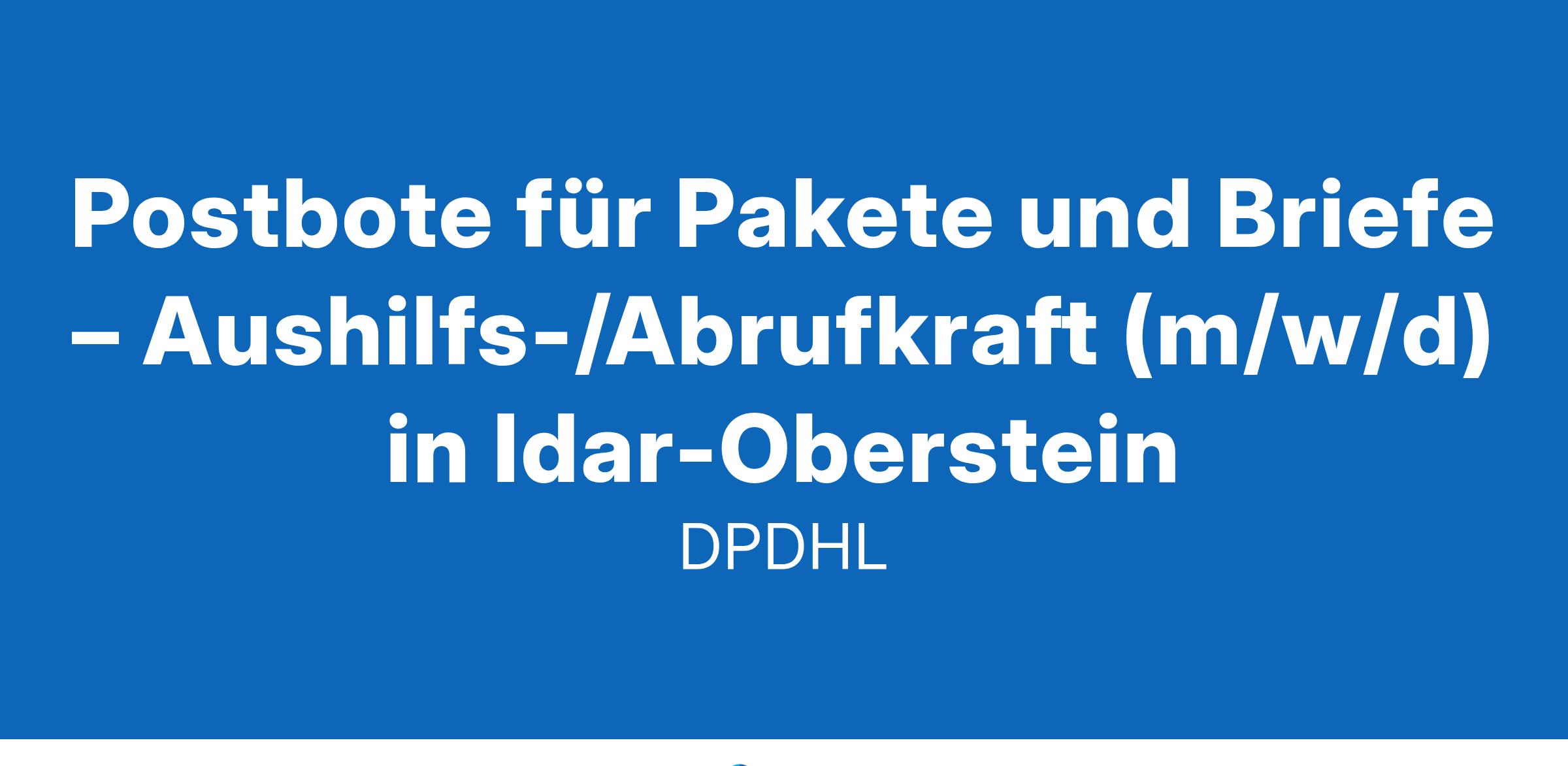Werde Aushilfe / Minijobber als Postbote für Pakete und Briefe in Idar-ObersteinAls Aushilfe / Minijobber bist du an einzelnen Tagen oder auch stundenweise für uns tätig. Nach einer bezahlten Einarbeitung kannst du sofort in deinem neuen Nebenjob starten.Was wir bieten16,92 € Tarif-Stundenlohn + ggf. regionale ArbeitsmarktzulageDu kannst sofort starten – Aushilfe / Minijob / StudentenjobFlexible Arbeitszeiten an vereinbarten ArbeitstagenKostenlose Bereitstellung von hochwertiger ArbeitskleidungAusführliche Einweisung (bezahlt) – wir machen dich fit für unser TeamEin krisensicherer Arbeitsplatz, garantierte Gehaltssteigerung gemäß Tarifvertrag und pünktliche GehaltszahlungenDeine Aufgaben bei unsZustellung von Brief- und Paketsendungen mit zur Verfügung gestellten HilfsmittelnSortierung von Paketen auf ZustellgebieteAuslieferung an bestimmten Tagen (zwischen Montag und Samstag)Sendungen im Durchschnitt unter 10 kgZustellung mit unseren Geschäftsfahrzeugen, bspw. vollelektrische FahrzeugeWas du als Aushilfe / Minijobber bietestDu darfst einen Pkw fahren (für die Zustellung)Du kannst dich auf Deutsch unterhaltenDu bist wetterfest und kannst gut anpackenDu bist zuverlässig und hängst dich reinAushilfe / Minijob bei Deutsche Post DHLAls Postbote bringst du den Menschen in deinem Bezirk Post- und Paketsendungen. Dabei lässt du dir von keinem Wetter die Laune verderben. Auch Quereinsteiger oder Studenten sind bei uns herzlich willkommen, denn du zählst, wie du bist!Wir freuen uns auf deine Bewerbung, am besten online! Klicke dazu einfach auf den 'Bewerben'-Button – auch ganz ohne Lebenslauf.MENSCHEN VERBINDEN, LEBEN VERBESSERN#werdeeinervonuns