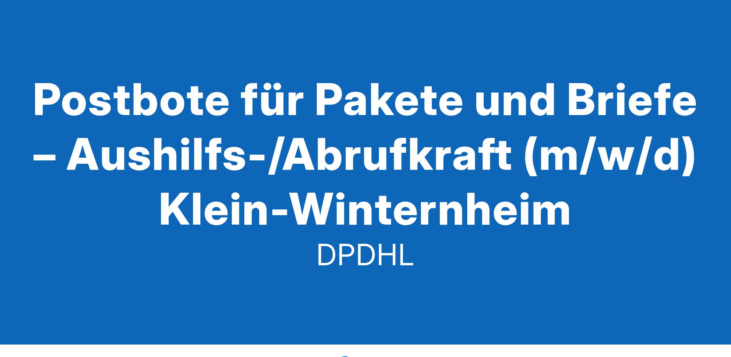 Werde Aushilfe / Minijobber als Postbote für Pakete und Briefe in Klein-WinternheimAls Aushilfe / Minijobber bist du an einzelnen Tagen oder auch stundenweise für uns tätig. Nach einer bezahlten Einarbeitung kannst du sofort in deinem neuen Nebenjob starten.Was wir bieten16,92 € Tarif-Stundenlohn + ggf. regionale ArbeitsmarktzulageDu kannst sofort starten – Aushilfe / Minijob / StudentenjobFlexible Arbeitszeiten an vereinbarten ArbeitstagenKostenlose Bereitstellung von hochwertiger ArbeitskleidungAusführliche Einweisung (bezahlt) – wir machen dich fit für unser TeamEin krisensicherer Arbeitsplatz, garantierte Gehaltssteigerung gemäß Tarifvertrag und pünktliche GehaltszahlungenDeine Aufgaben bei unsZustellung von Brief- und Paketsendungen mit zur Verfügung gestellten HilfsmittelnSortierung von Paketen auf ZustellgebieteAuslieferung an bestimmten Tagen (zwischen Montag und Samstag)Sendungen im Durchschnitt unter 10 kgZustellung mit unseren Geschäftsfahrzeugen, bspw. vollelektrische FahrzeugeWas du als Aushilfe / Minijobber bietestDu darfst einen Pkw fahren (für die Zustellung)Du kannst dich auf Deutsch unterhaltenDu bist wetterfest und kannst gut anpackenDu bist zuverlässig und hängst dich reinAushilfe / Minijob bei Deutsche Post DHLAls Postbote bringst du den Menschen in deinem Bezirk Post- und Paketsendungen. Dabei lässt du dir von keinem Wetter die Laune verderben. Auch Quereinsteiger oder Studenten sind bei uns herzlich willkommen, denn du zählst, wie du bist!Wir freuen uns auf deine Bewerbung, am besten online! Klicke dazu einfach auf den 'Bewerben'-Button – auch ganz ohne Lebenslauf.MENSCHEN VERBINDEN, LEBEN VERBESSERN#werdeeinervonuns
