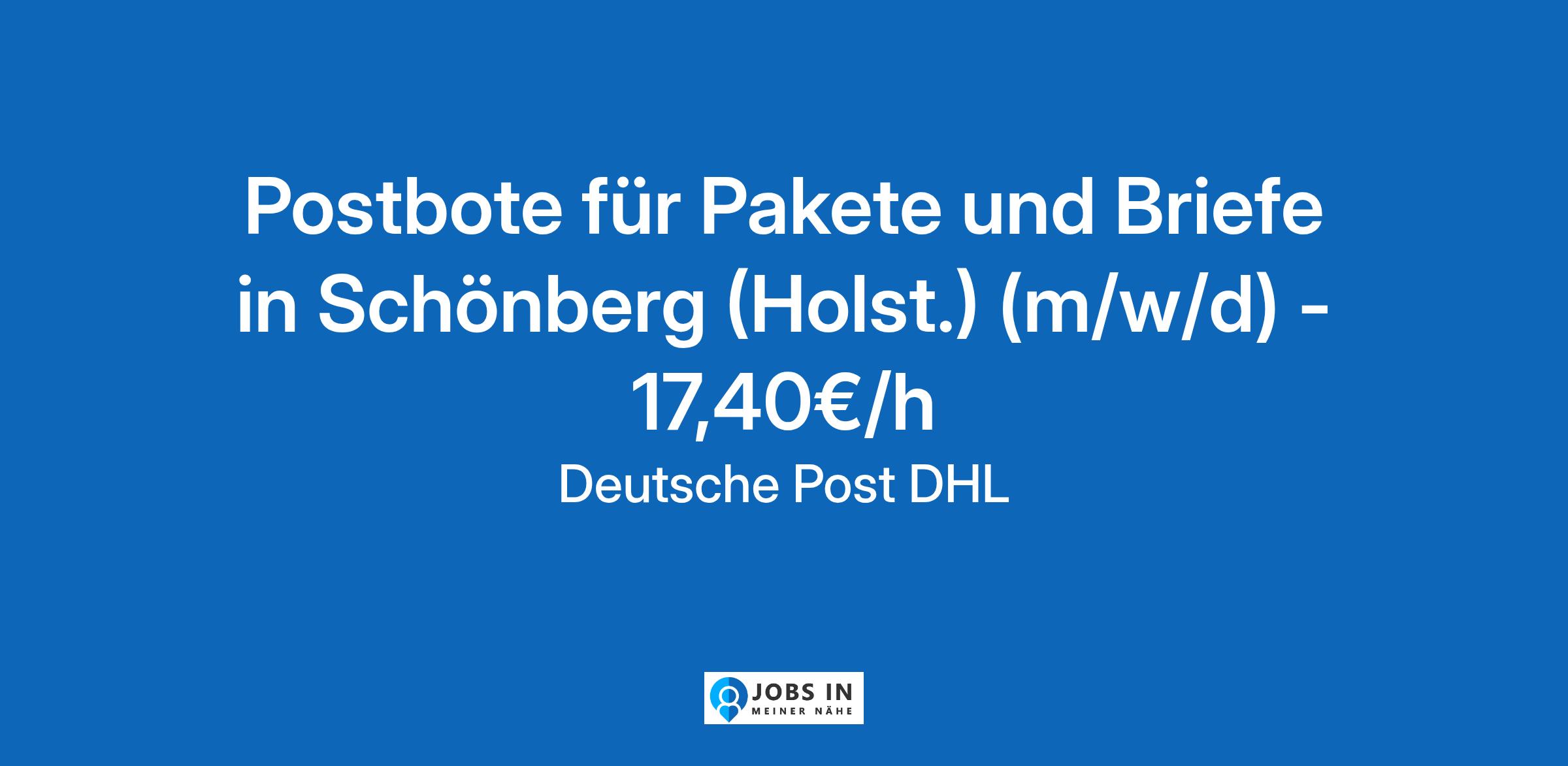 Werde Zusteller für Briefe und Pakete in Schönberg (Holstein) Als Zusteller bringst du den Menschen in einem Bezirk Post- und P aketsendungen. Dabei lässt du dir von keinem Wetter die Laune verderben und bist fünf Werktage pro Woche (zwischen Montag und Samstag) unterwegs. Auch Quereinsteiger sind bei uns herzlich willkommen, denn du zählst, wie du bist!