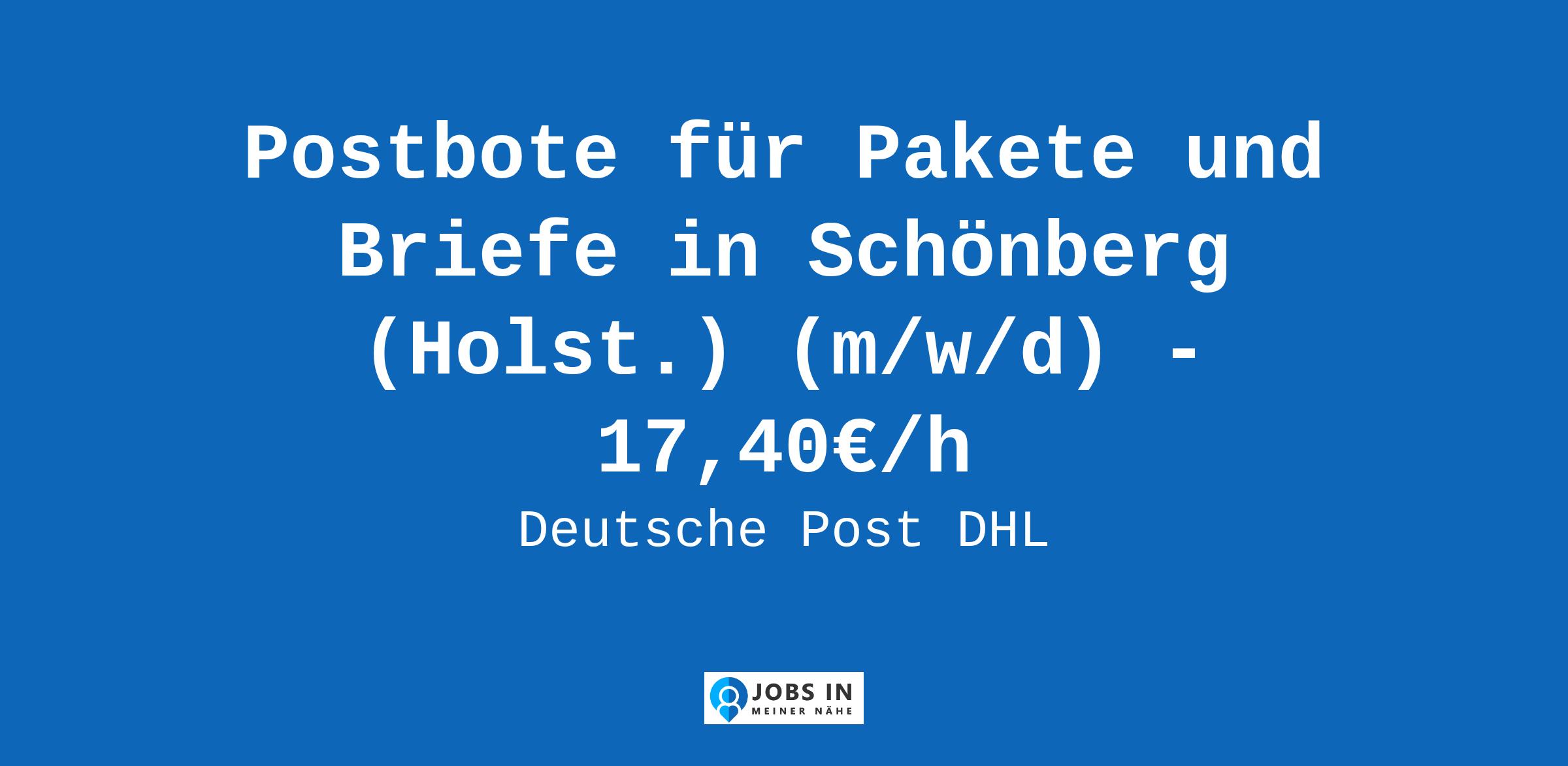 Werde Zusteller für Briefe und Pakete in Schönberg (Holstein) Als Zusteller bringst du den Menschen in einem Bezirk Post- und P aketsendungen. Dabei lässt du dir von keinem Wetter die Laune verderben und bist fünf Werktage pro Woche (zwischen Montag und Samstag) unterwegs. Auch Quereinsteiger sind bei uns herzlich willkommen, denn du zählst, wie du bist!