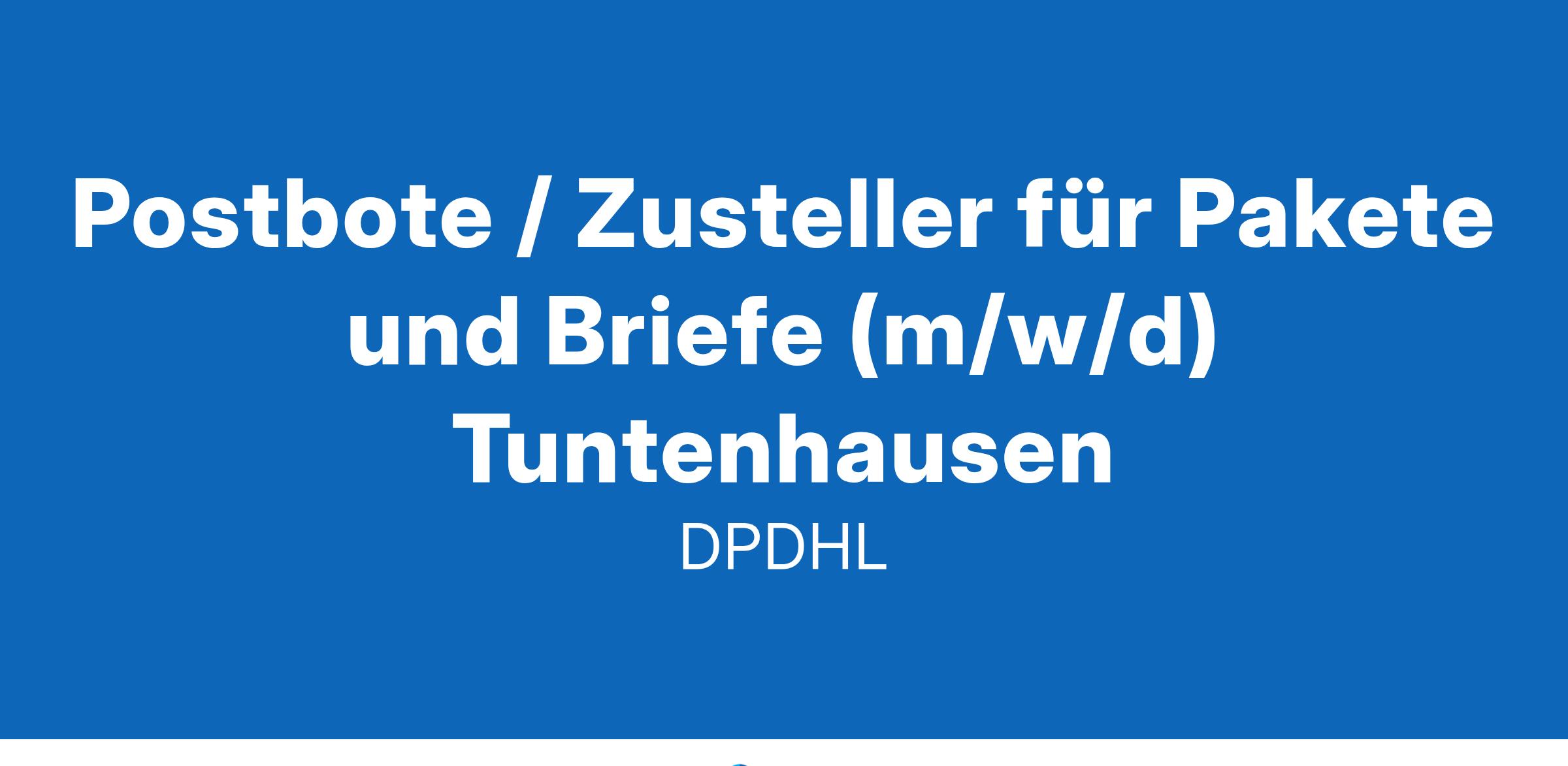 Werde Postbote für Pakete und Briefe in TuntenhausenWas wir bietenUNBEFRISTETER Arbeitsvertrag17,05 € Tarif-Stundenlohn (inkl. 50% Weihnachtsgeld) + 1,55 € RegionalzulageWeitere 50% Weihnachtsgeld im NovemberBis zu 332 € UrlaubsgeldDu kannst sofort unbefristet in Vollzeit startenMöglichkeit der Auszahlung von ÜberstundenEin krisensicherer Arbeitsplatz, garantierte Gehaltssteigerung gemäß Tarifvertrag und pünktliche GehaltszahlungenKostenlose Bereitstellung von hochwertiger ArbeitskleidungAusführliche Einweisung (bezahlt) – wir machen dich fit für die ZustellungEntwicklungsmöglichkeiten (bspw. Standortleiter) bei guten Leistungen und offenen Positionen möglichAttraktive Mitarbeiterangebote wie z.B. arbeitgeberfinanzierte betriebliche Altersvorsorge, Fahrradleasing, Rabatte bei Mobilfunkanbietern, etc.Deine Aufgaben als Postbote bei unsZustellung von Brief- und Paketsendungen mit zur Verfügung gestellten HilfsmittelnAuslieferung an 5 Werktagen (zwischen Montag und Samstag)Sendungen im Durchschnitt unter 10 kgZustellung mit unseren Geschäftsfahrzeugen, bspw. vollelektrische FahrzeugeWas du als Zusteller bietestDu darfst einen Pkw fahrenDu kannst dich auf Deutsch unterhaltenDu bist wetterfest und kannst gut anpackenDu bist zuverlässig und hängst dich reinWerde Postbote bei Deutsche Post DHLAls Postbote bringst du den Menschen in deinem Bezirk Post- und Paketsendungen. Dabei lässt du dir von keinem Wetter die Laune verderben und bist fünf Werktage pro Woche (zwischen Montag und Samstag) unterwegs. Auch Quereinsteiger oder Studenten sind bei uns herzlich willkommen, denn du zählst, wie du bist!Wir freuen uns auf deine Bewerbung als Fahrer, am besten online! Klicke dazu einfach auf den 'Bewerben'-Button – auch ganz ohne Lebenslauf.MENSCHEN VERBINDEN, LEBEN VERBESSERN#werdeeinervonuns