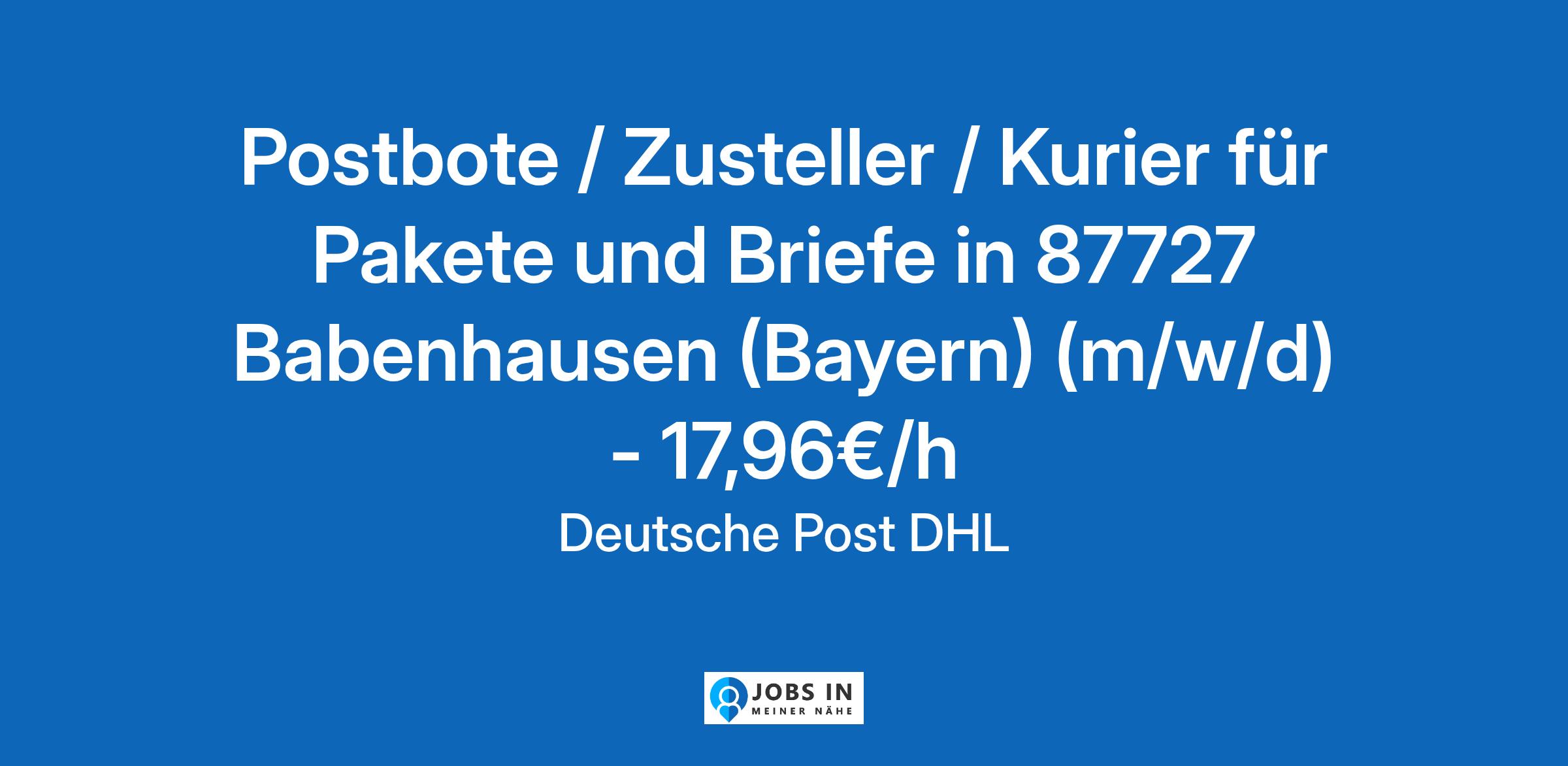 Postbote / Zusteller / Kurier für Pakete und Briefe in 87727 Babenhausen (Bayern) (m/w/d) - 17,96€/h