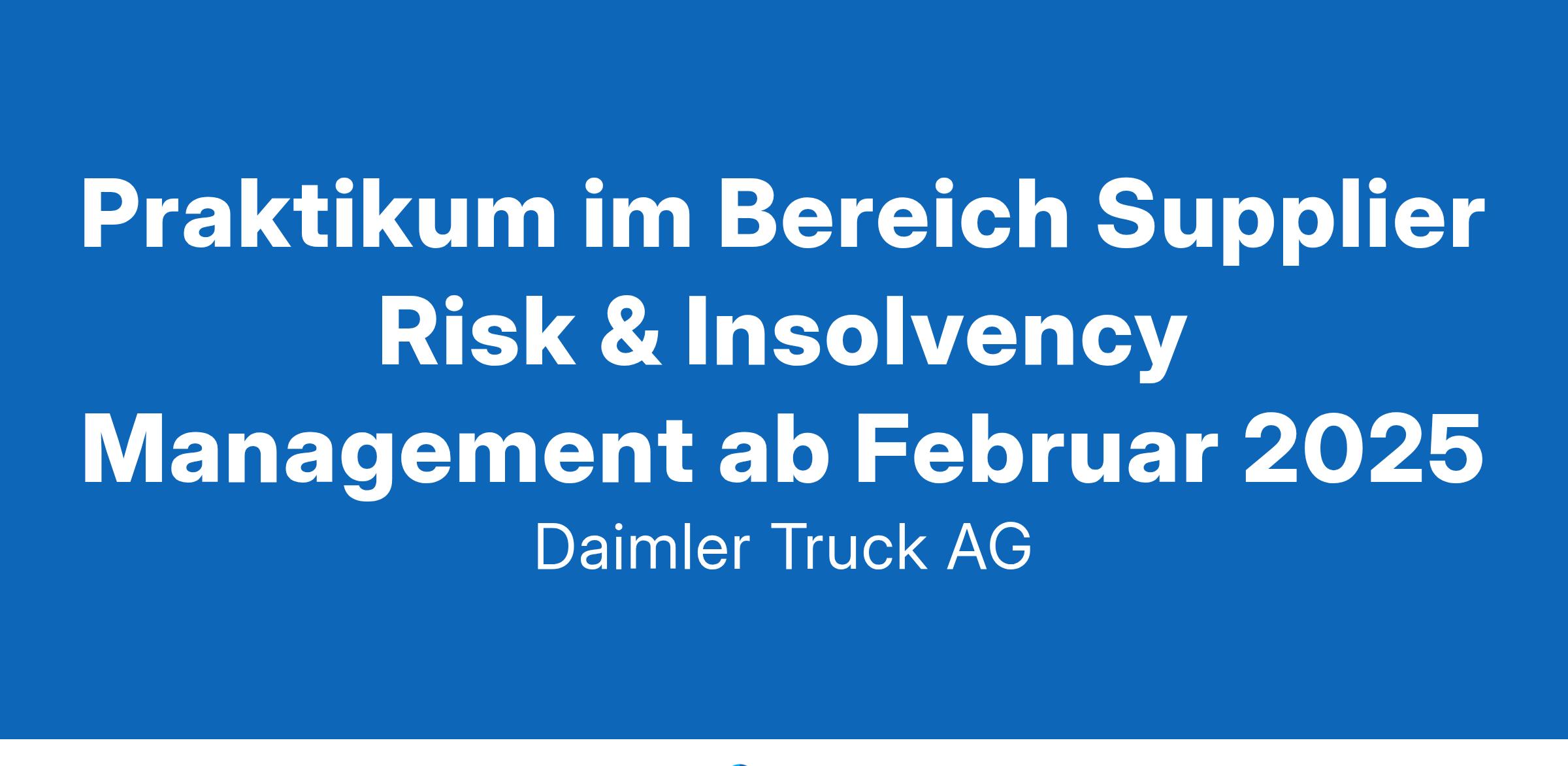 Über uns Bei Daimler Truck verändern wir das heutige Transportwesen. Wir übernehmen weltweit Verantwortung und arbeiten gemeinsam an unserer Vision: Leading Sustainable Transportation. Als ein globales Team treiben wir unseren Fortschritt und Erfolg gemeinsam voran – jede:r macht bei Daimler Truck den Unterschied. Gemeinsam wollen wir einen nachhaltigeren Transport erreichen, unseren CO2-Fußabdruck verringern, die Sicherheit auf und neben den Straßen erhöhen und intelligentere Technologien sowie attraktive Finanzierungslösungen entwickeln. Wir arbeiten für alle, die die Welt bewegen – das ist unser gemeinsamer Antrieb bei Daimler Truck. Werde Teil unseres globalen Teams: Du machst den Unterschied – YOU MAKE US Aufgaben Das Financial Supplier Risk & Insolvency Management ist ein motiviertes, dynamisches Team, das sich auf das Management von Lieferantenrisiken spezialisiert hat. Unser Fokus liegt auf der Analyse und dem Umgang mit finanziellen Risiken sowie der Betreuung von Lieferanteninsolvenzen. Wir arbeiten eng mit den Bereichen Einkauf, Legal, Lieferantenmanagement und Controlling zusammen, um präventive und reaktive Maßnahmen zur Stabilisierung unserer Supply Chain zu entwickeln und umzusetzen. Unterstützung bei der Bewertung der wirtschaftlichen Stabilität und nachhaltiger Sanierungsaussichten unserer Lieferanten für Produktions- und Nichtproduktionsmaterialien Mitwirkung bei der Sicherstellung der Teileversorgung im Falle von Lieferantenrestrukturierungen und -insolvenzen Enge Zusammenarbeit mit dem operativen Einkauf und anderen Fachabteilungen wie Lieferantenmanagement, Legal und Entwicklung Unterstützung bei der Erarbeitung und Umsetzung strategischer Maßnahmen zur Risikominimierung bei Lieferanten Mitarbeit bei der Einrichtung, Steuerung und Ausführung des Management Boards Profil Studiengänge Wirtschaftswissenschaften, Wirtschaftsingenieurwesen, juristisches bzw. wirtschaftsjuristisches Studium oder vergleichbarer Studiengang Interesse an Finanzthemen sowie Insolvenzrecht Analytische Fähigkeiten und eine strukturierte Arbeitsweise Teamfähigkeit und Kommunikationsstärke Gute Deutsch- und Englischkenntnisse Microsoft Office Kenntnisse wünschenswert Wir bieten Einblicke in ein spannendes und vielseitiges Arbeitsfeld Mitarbeit in einem engagierten und kompetenten Team Möglichkeit zur Übernahme von Verantwortung und eigenständigem Arbeiten Flexible Arbeitszeiten und eine attraktive Vergütung