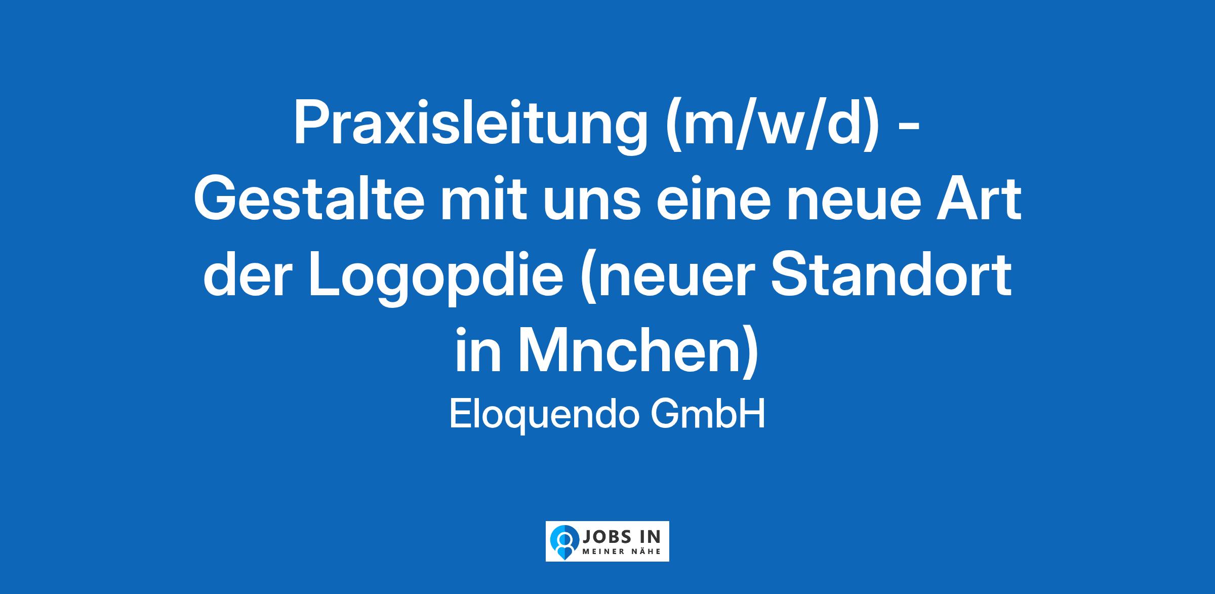 Bist du bereit, die Zukunft der Logopdie mitzugestalten? Bei Eloquendo GmbH in Mnchen suchen wir zum 1.9.2025 eine engagierte Praxisleitung Logopdie (m/w/d) , die unsere Vision teilt: Logopdie fr alle zugnglich zu machen.