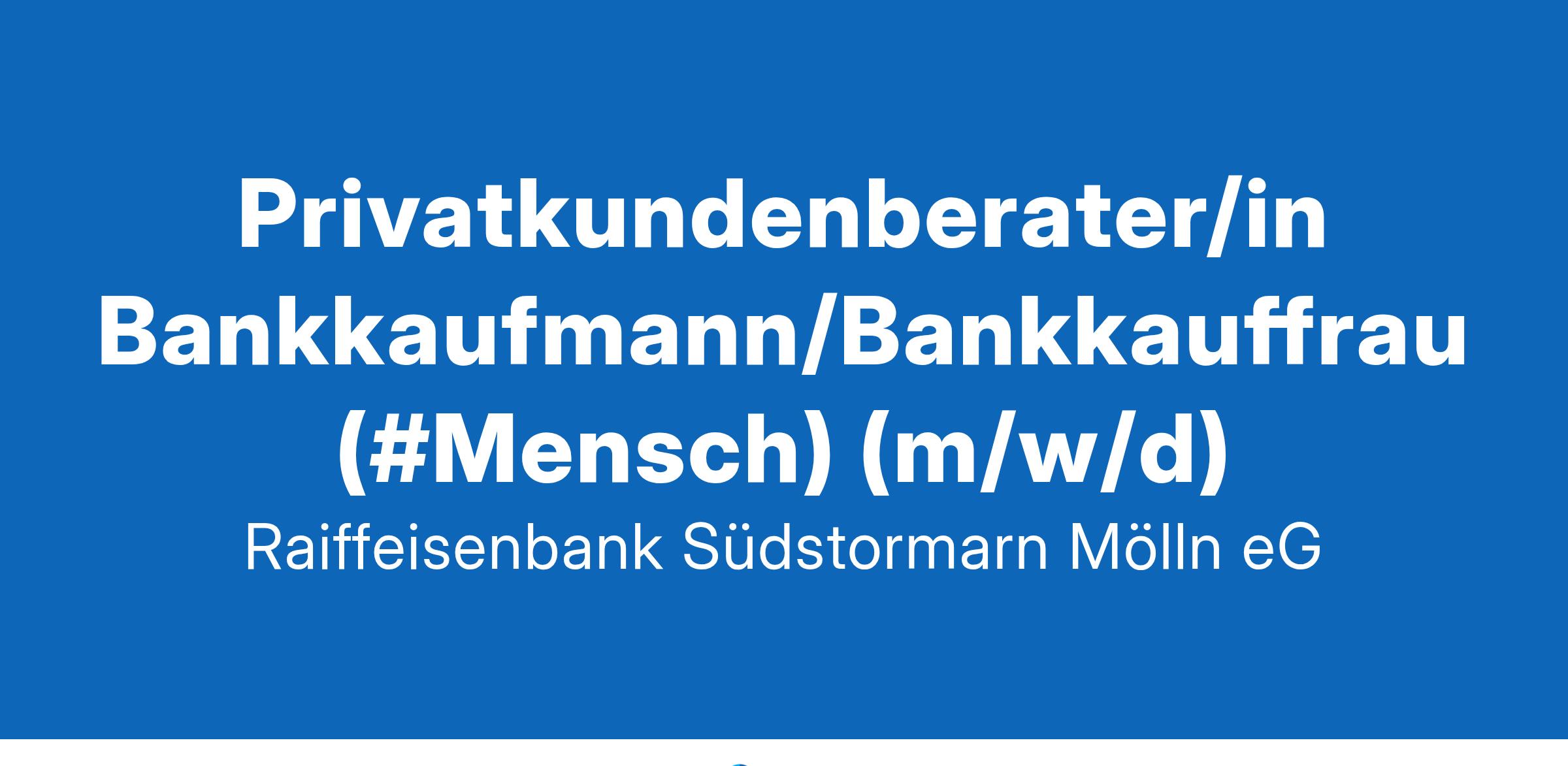 Über uns Jetzt bewerben und Chance nutzen. Die Raiffeisenbank Südstormarn Mölln eG ist eine regional tätige Genossenschaftsbank mit einer Bilanzsumme von über 965 MEUR. Mit ihren 150 Mitarbeiterinnen und Mitarbeitern ist sie in neun Geschäftsstellen sowie mit einem eigenen Immobilienteam vertreten und bietet alle Dienstleistungen einer modernen Bank an. Gut zu wissen Die Tätigkeit ist für eine Anstellung in Vollzeit vorgesehen. Der Einsatzort ist unsere Bankfiliale in Oststeinbek. Zur optimalen Erfüllung der Stelle sollte die Qualifikation vorhanden sein, Wertpapiere bis Risikoklasse 3 beraten zu können. Sie erfüllen noch nicht alle Kriterien, interessieren sich aber dennoch für die Stelle? Sprechen Sie uns an – gemeinsam finden wir einen Entwicklungsweg. (*) jeweils #Mensch - Wir stehen fest hinter dem Grundsatz, dass alle Menschen bei uns willkommen sind, sowohl für unsere Mitarbeitendenstruktur als auch für unsere Kundendiversität. Aufgaben hre Aufgaben sind eine initiative, ganzheitliche sowie bedarfsorientierte Beratung und Betreuung Ihrer zugeordneten Privatkunden* im Passiv-, Aktiv- und Dienstleistungsgeschäft. die Zufriedenstellung Ihrer Kunden* durch zuverlässige Bearbeitung aller anfallenden Kundenaufträge sowie aktive Kundenansprache im Sinne einer nachhaltigen und langfristigen Kundenbeziehung. die Gewinnung von Neukunden* nach dem Gesamtbedarfsansatz unter Nutzung von aktivem Empfehlungsgeschäft. die Signalerkennung bei unseren Kunden und situationsgerechte Überleitung an Ihre Fachkollegen. Profil Sie begeistern uns mit einer erfolgreich abgeschlossenen bankkaufmännischen Ausbildung und erster Berufserfahrung im Privatkundenkontakt. Ihrer Freude am Umgang mit Menschen sowie Ihrer ausgeprägten Kommunikationsfähigkeit und Ihrer Begeisterung für das Vertriebsgeschäft. einer hohen Selbstmotivation in Verbindung mit einer selbstständigen, eigenverantwortlichen sowie strukturierten Arbeitsweise. Ihren ggf. vorhandenen „i-Tüpfelchen“: einem BeraterPass Privatkundenberatung sowie Ihren Kenntnissen der genossenschaftlichen Produktpalette und in der Wertpapierberatung mit Fokus auf das Passivgeschäft. einem sicheren und versiertem Umgang mit unterschiedlichen IT-Programmen, den digitalen Medien und den gängigen MS-Office-Anwendungen. Ihrem Verständnis für ein nachhaltiges Arbeiten – sowohl in Arbeitsorganisation als auch dem bewussten Ressourcenumgang. Wir bieten Wir begrüßen Sie in unserem Team mit Benefits wie der RBSuM-working family – dem Team, in dem Sie das WIR durch gegenseitige Unterstützung erleben können. Schauen Sie doch mal rein: (Inhalt entfernt) einem guten Ausgleich zwischen Berufs- und Privatleben : Flexible Arbeitszeiten, Gleitzeit, Freistellungstage, Unterstützung Ehrenämter. In Abstimmung mit Ihrer Führungskraft und dem Team können Sie auch mobil arbeiten. einer wertschätzenden Unternehmenskultur und Zusammenarbeit auf Augenhöhe über alle Hierarchieebenen. einer leistungsgerechten Vergütung nach Tarifvertrag , Vermögenswirksamen Leistungen, Betrieblichen Altersversorgung sowie Sondertarifen bei Versicherungen zur finanziellen und gesundheitlichen Sicherheit. verschiedenen Angeboten der Gesundheitsvorsorge wie Bildschirmarbeitsplatzbrille, Bikeleasing oder der mobilen Massage. Die Gesundheit unserer Mitarbeiter liegt uns am Herzen. Förderung der persönlichen und fachlichen Weiterbildungs- und Entwicklungsmöglichkeiten . Diese besprechen Sie individuell u. a. in Ihrem jährlichen Entwicklungsgespräch mit Ihrer Führungskraft. kostenfreie Parkmöglichkeiten und E-Ladesäulen am Verwaltungssitz vorhanden. einer erfolgreichen Auditierung für aktuelle und geplante Maßnahmen zur Vereinbarkeit von Beruf und Familie . einer erfolgreichen Qualifikation als Top Company 2025 . Kontakt Das klingt interessant und passend? Dann bewerben Sie sich jetzt! Wir freuen uns auf Ihre vollständige Online-Bewerbung inklusive Ihrer Gehaltsvorstellung und dem frühestmöglichen Eintrittstermin. Bitte klicken Sie auf diesen Link (Inhalt entfernt) und fügen Ihre Bewerbungsdaten bei „Jetzt hier bewerben“ ein. Über Ihre Bewerbung freut sich unsere Kollegin Katharina Kost aus dem Personalteam. Sie erreichen Sie bei Fragen unter der Telefonnummer (Inhalt entfernt) oder per E-Mail an (Inhalt entfernt).