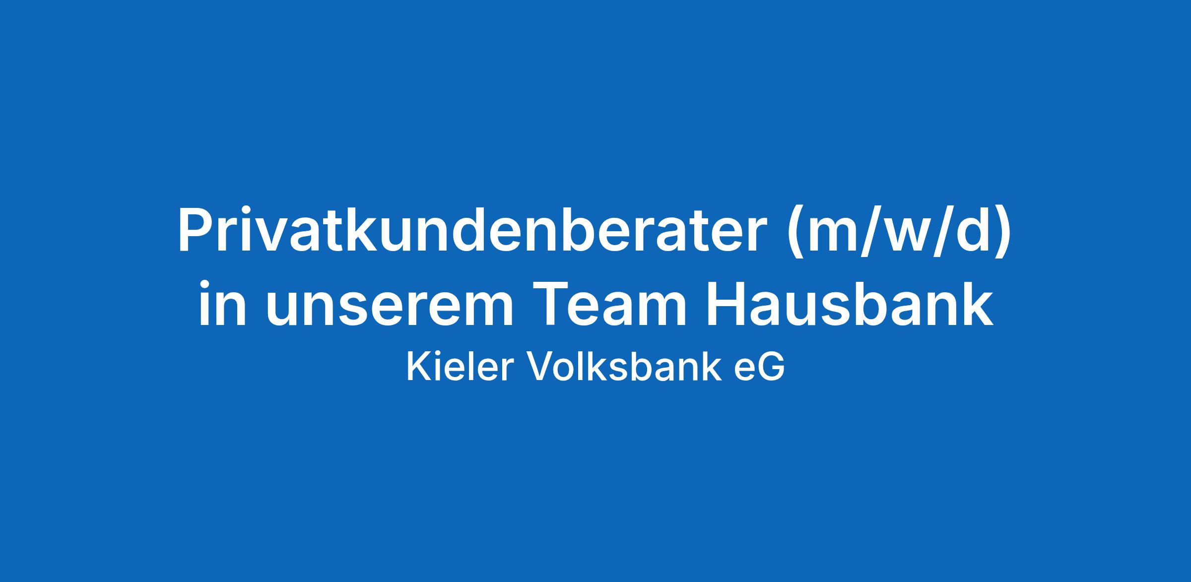 Wir suchen Sie zum nächstmöglichen Zeitpunkt als Privatkundenberater (m/w/d) für unser Team Hausbank mit dem Schwerpunkt Beratung in der Region Süd ( Standorte: Molfsee-Rammsee, Russee, Preetz und Elmschenhagen) um mit uns die Zukunft der Kieler Volksbank zu gestalten!