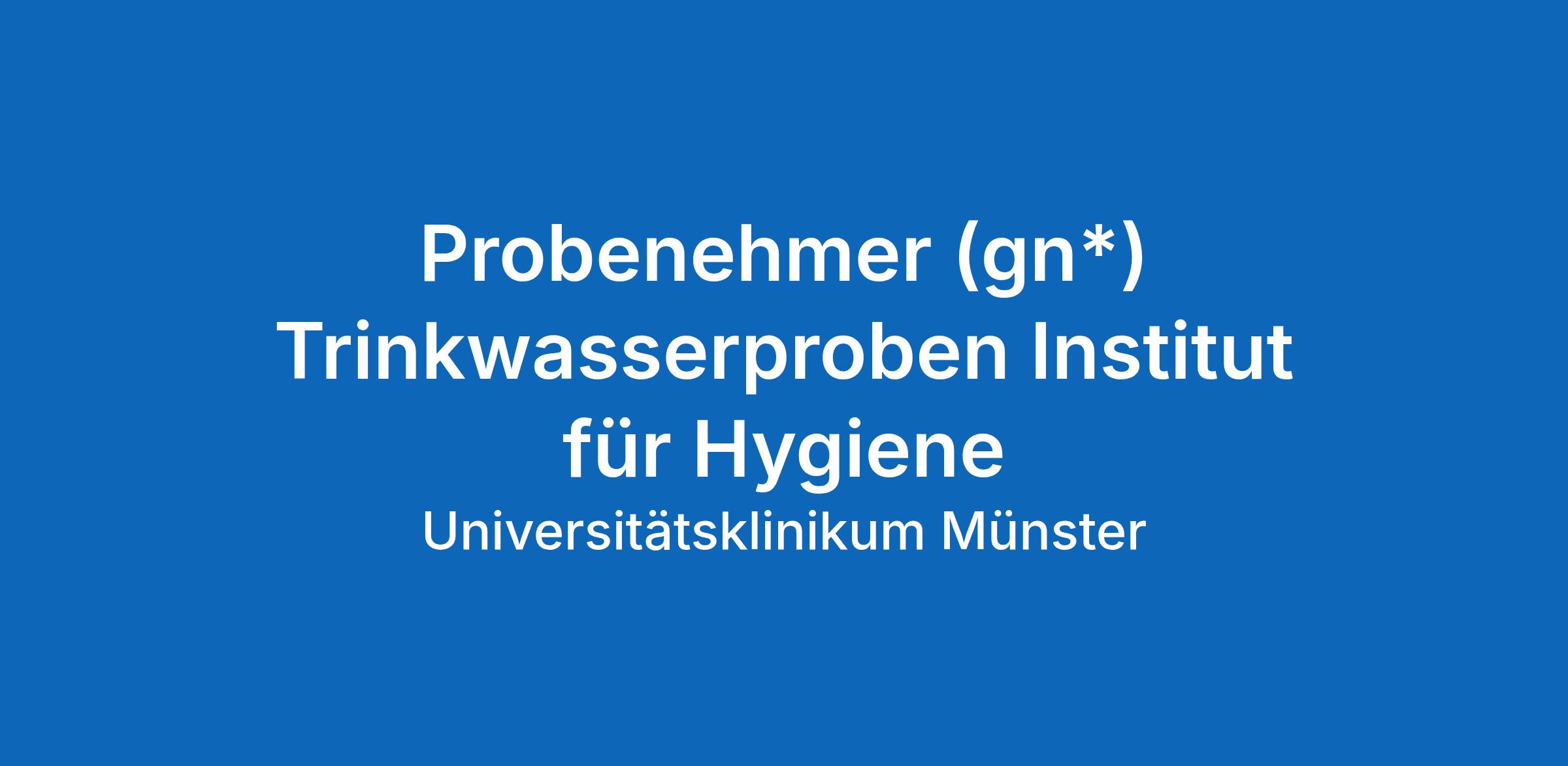 Damit wir unserem hohen Anspruch tagtäglich gerecht werden, freuen wir uns auf Deinen Einsatz im Institut für Hygiene im Bereich Umwelthygiene. Die Probenahme ist der erste und sehr bedeutende Schritt zur Sicherstellung der Wasserqualität. Sie bildet die Grundlage für die chemische und mikrobiologische Analytik im nach der DIN 17025 akkreditierten Bereich der Umwelthygiene. Die Probenahmen beziehen sich auf das UKM und dessen assoziierte Kliniken sowie auf externe Partner – am besten mit Dir!