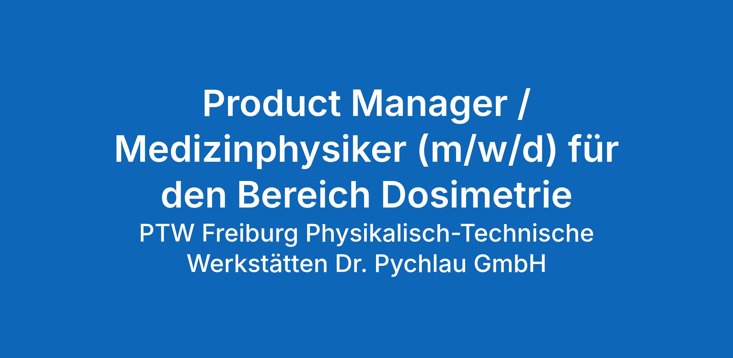 Product Manager / Medizinphysiker (m/w/d) für den Bereich Dosimetrie Festanstellung, Vollzeit · Freiburg