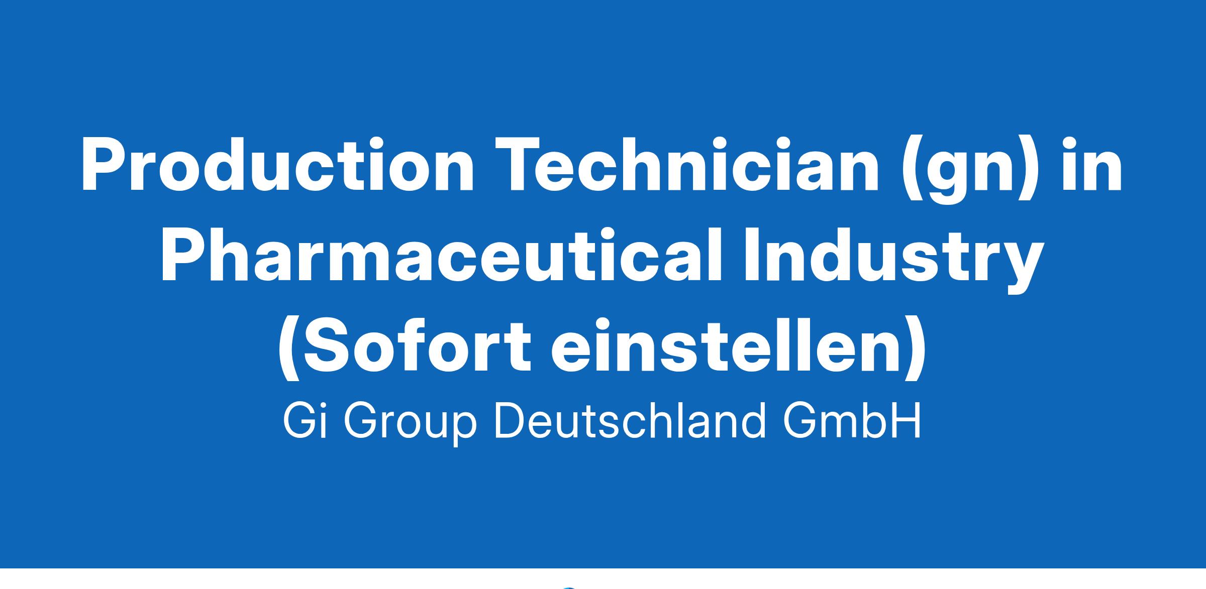 Production Technician (gn) in Pharmaceutical Industry (Sofort einstellen)
