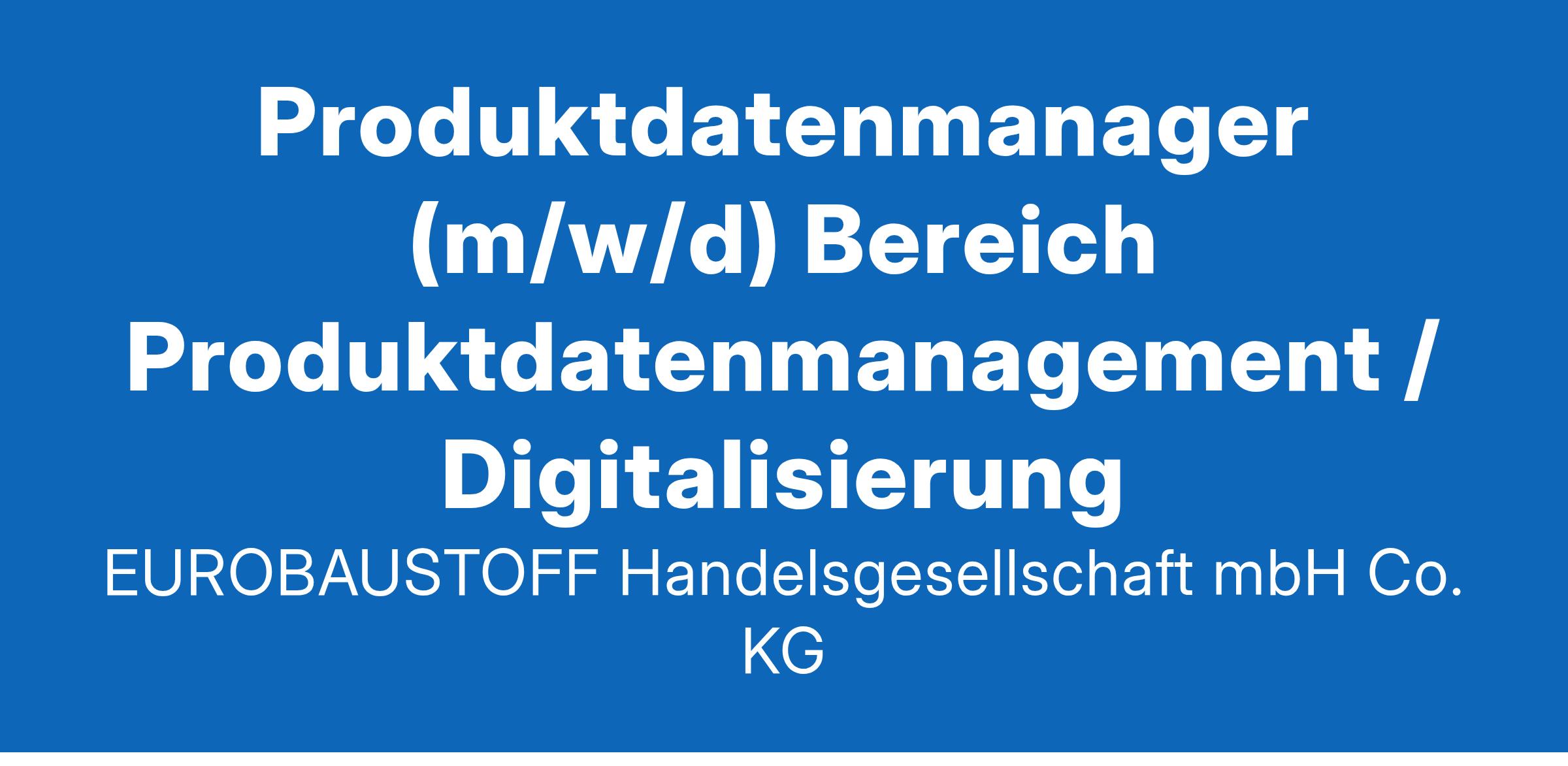 Produktdatenmanager (m/w/d)Bereich Produktdatenmanagement / Digitalisierung