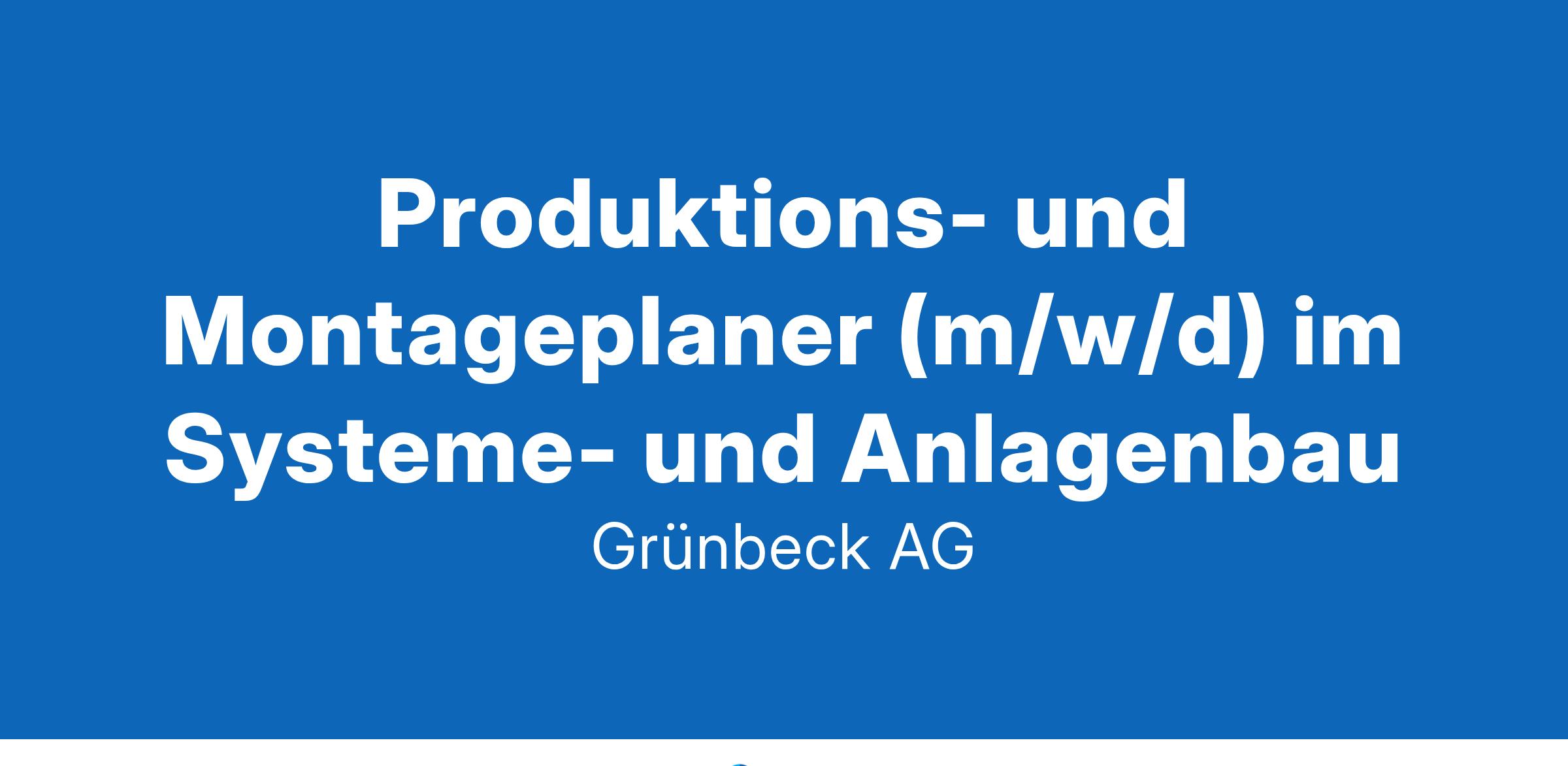 Grünbeck ist ein mittelständisch geprägtes Unternehmen im Bereich der Wasseraufbereitung. Wir entwickeln, fertigen und vertreiben innovative, technisch und qualitativ hochwertige und umweltschonende Produkte. Dank hervorragender Experten in unserem Grünbeck-Team können wir uns den komplexer werdenden Aufgaben in der Wasseraufbereitung auch in Zukunft erfolgreich stellen. Für den Bereich Produktion & Logistik suchen wir ab sofort einen Produktions- und Montageplaner (m/w/d) im Systeme- und Anlagenbau Darum geht es konkret Planen, Kalkulieren und Vorbereiten aller Prozesselemente zur Durchführung von Montagen und Inbetriebnahmen im Systemanlagenbau Führen und Steuern der eingesetzten Montage-Mitarbeiter Überwachen der Baustellenabschnitte sowie der Fremdfirmen vor Ort mit Teilnahme an Baustellenbesprechungen und Abstimmungen mit dem Kunden Überwachen der Kosten von System-Montagen inklusive der Einsatzplanung der benötigten Fremdfirmen Rückmelden und Abstimmen mit den Bereichen Technik und Vertrieb zur Verbesserung der vorgeschalteten Prozesse Abstimmen und Ausrichten der unternehmensinternen Prozesse zur Weiterentwicklung der Montageplanung Verantworten und Mitwirken bei der Auftragssteuerung zur Auslastungsplanung innerhalb der Abteilung Das wünschen wir uns erfolgreich abgeschlossene Berufsausbildung im Metall-, Elektro- oder Installateurhandwerk Weiterbildung zum Meister/Techniker oder Schweißfachmann, vorzugsweise in der Elektrotechnik oder im Rohrleitungsbau fundierte Berufserfahrung im Anlagenbau oder vergleichbarer Tätigkeit selbstständige, zuverlässige und engagierte Arbeitsweise sowie Reisebereitschaft Teamfähigkeit und Flexibilität sicherer Umgang mit einem ERP-System z.B. Microsoft Dynamics 365 sehr gute Deutschkenntnisse, englische Sprachkenntnisse sind von Vorteil Das wünschen wir uns 30 Tage Jahresurlaub Zahlung von Urlaubs- und Weihnachtsgeld Flexible Arbeitszeit mit Arbeitszeitkonto Betriebliche Altersversorgung Mobiles Arbeiten Grünbeck AG | Josef-Grünbeck-Straße 1 | 89420 Höchstädt a. d. Donau | www.gruenbeck.de