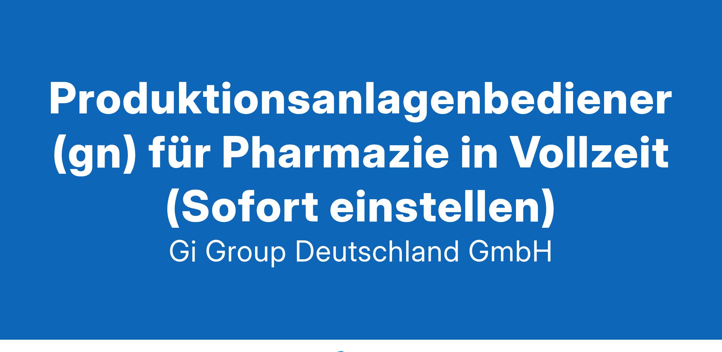 Produktionsanlagenbediener (gn) für Pharmazie in Vollzeit (Sofort einstellen)
