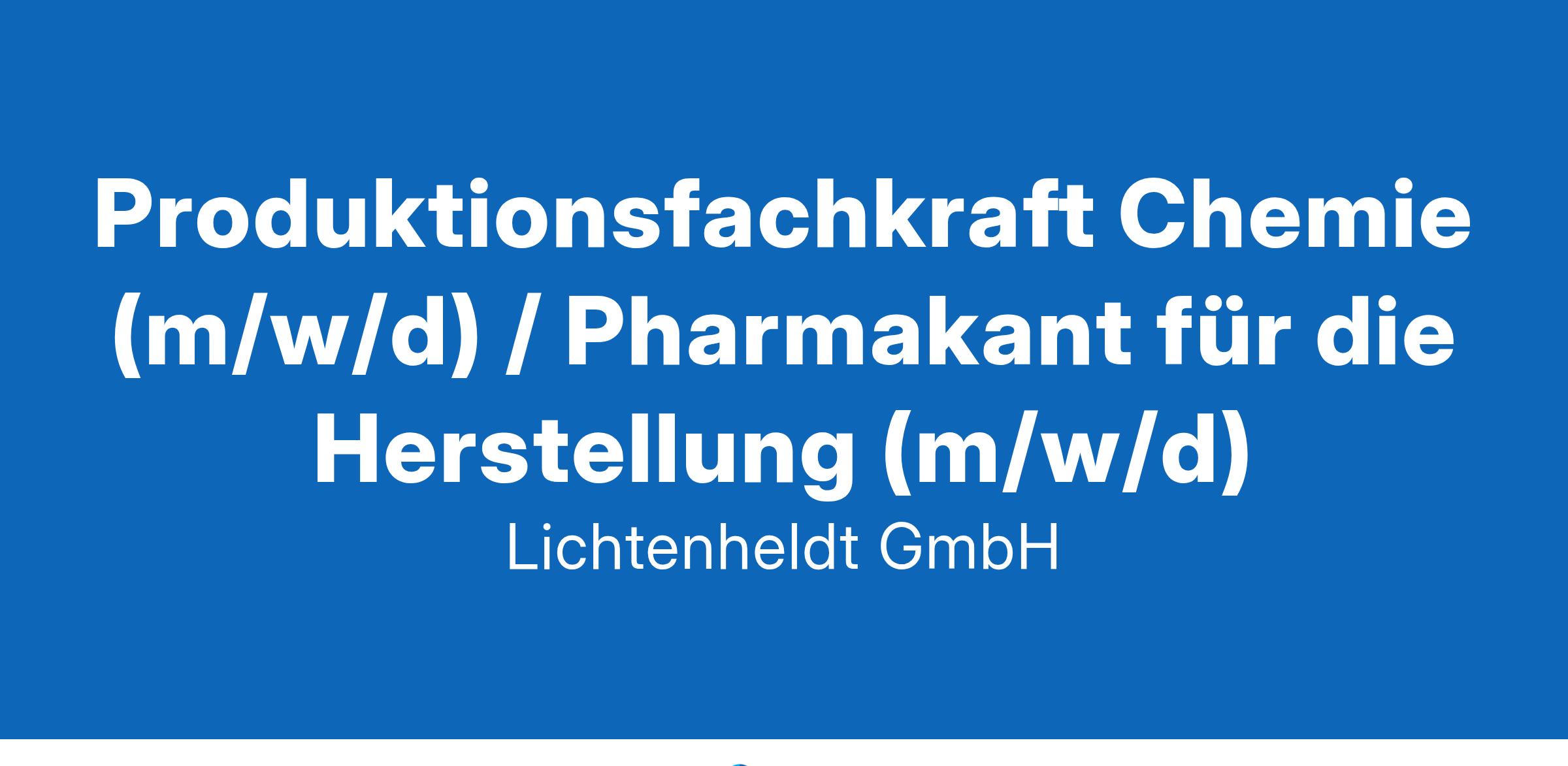 Produktionsfachkraft Chemie (m/w/d) / Pharmakant für die Herstellung (m/w/d)