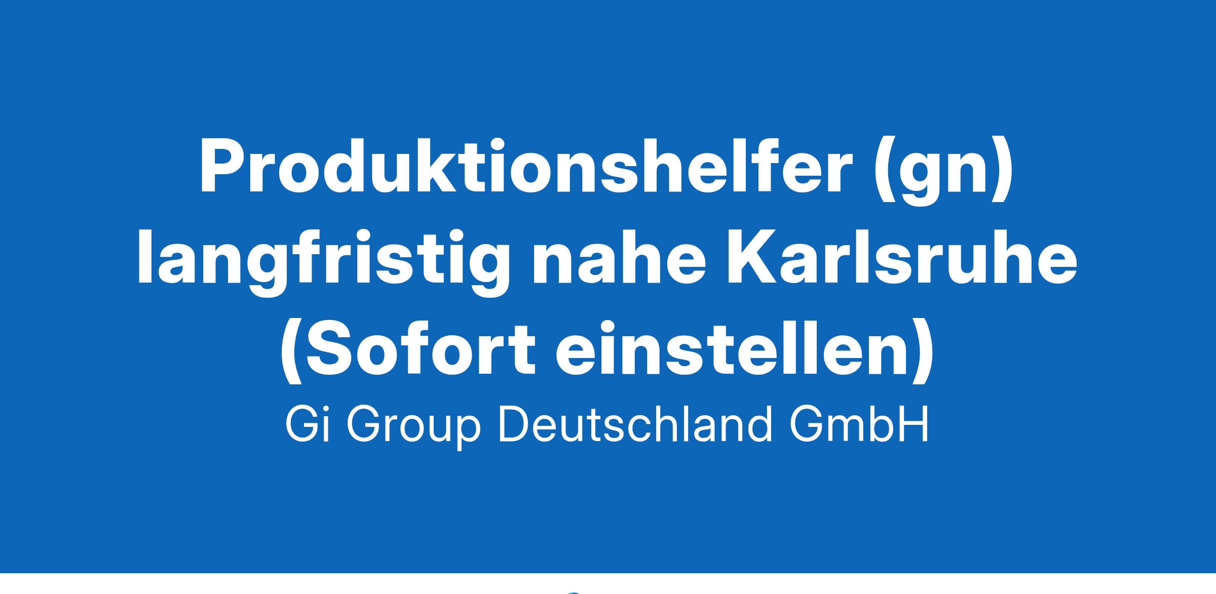 Produktionshelfer (gn) langfristig nahe Karlsruhe ab sofort in Vollzeit Die Gi Group ist ein international agierender Personaldienstleister mit mehr als 500 Standorten in 40 Ländern. Unser Angebot Attraktive Vergütung nach GVP-Tarifvertrag Einen langfristigen Einsatz in einem unserer top Kundenunternehmen Gute Erreichbarkeit mit dem PKW und nahegelegene Parkplätze vorhanden Entwicklungsmöglichkeiten mit dem Netzwerk eines internationalen Unternehmens Dein Profil als Produktionshelfer Erste Arbeitserfahrung in Produktionsumgebungen und Reinraum (wünschenswert) Bereitschaft in Wechselschicht (Früh- oder Spätschicht) zu arbeiten Gute Deutschkenntnisse mind. B Level in Wort und Schrift Fingerfertigkeit, Nichtraucher und kein Make-up Deine Aufgaben Herstellung von Screen Tapes Regelmäßige Qualitätskontrollen und einfache Fehlerbehebungen Kontinuierliche Reinigung und Inspektion des Produktions-Equipments Überwachung und Sicherstellung des Materialflusses Deine Bewerbung Für Deine Bewerbung als Produktionshelfer klicke bitte einfach auf „Jetzt bewerben“. Dort kannst Du Deine Kontaktdaten eingeben sowie Deinen Lebenslauf und Deine Bewerbungsunterlagen hochladen. Du benötigst dafür nur ca. 1 Minute. Dein zuständiger Personaldisponent wird sich bei Dir schnellstmöglich melden. Gerne kannst Du uns auch Deine Bewerbungsunterlagen per E-Mail zusenden. Wir freuen uns auf Deine Bewerbung! Unsere Stellenangebote richten sich an Arbeitssuchende jeglichen Geschlechts. (gn) = geschlechtsneutral. Kontakt Gi Group Recruiting Team