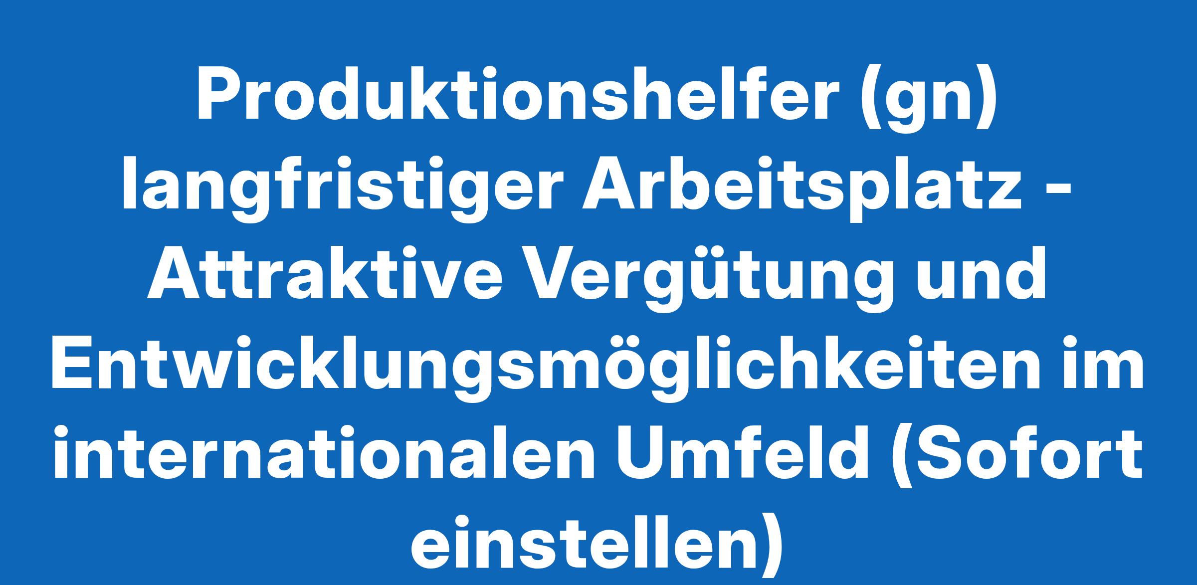 Produktionshelfer (gn) langfristiger Arbeitsplatz - Attraktive Vergütung und Entwicklungsmöglichkeiten im internationalen Umfeld (Sofort einstellen)