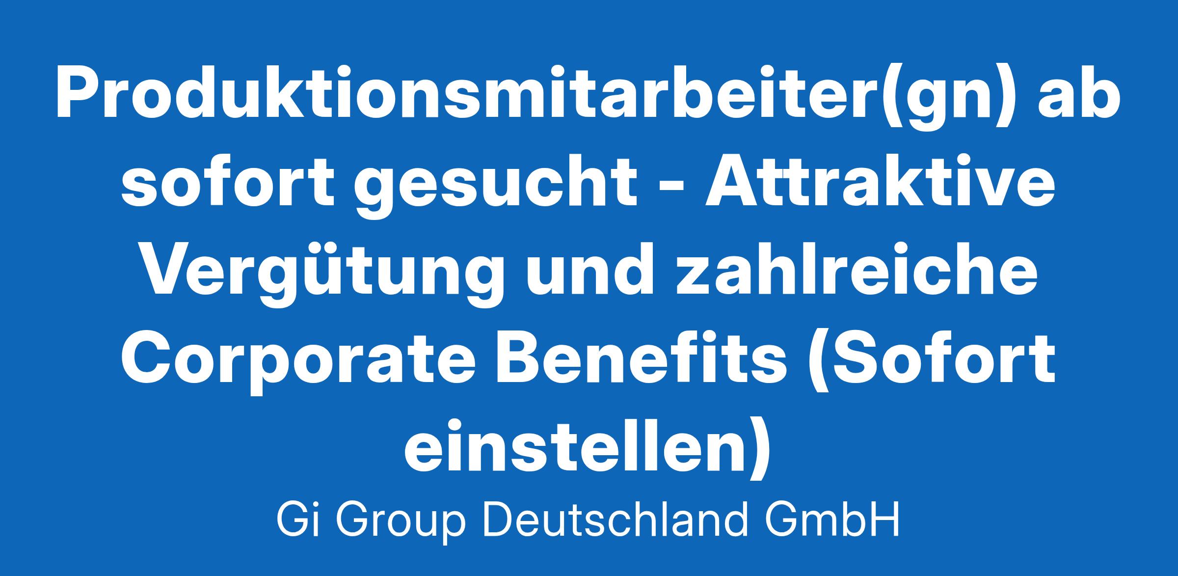 Produktionsmitarbeiter(gn) ab sofort gesucht - Attraktive Vergütung und zahlreiche Corporate Benefits (Sofort einstellen)