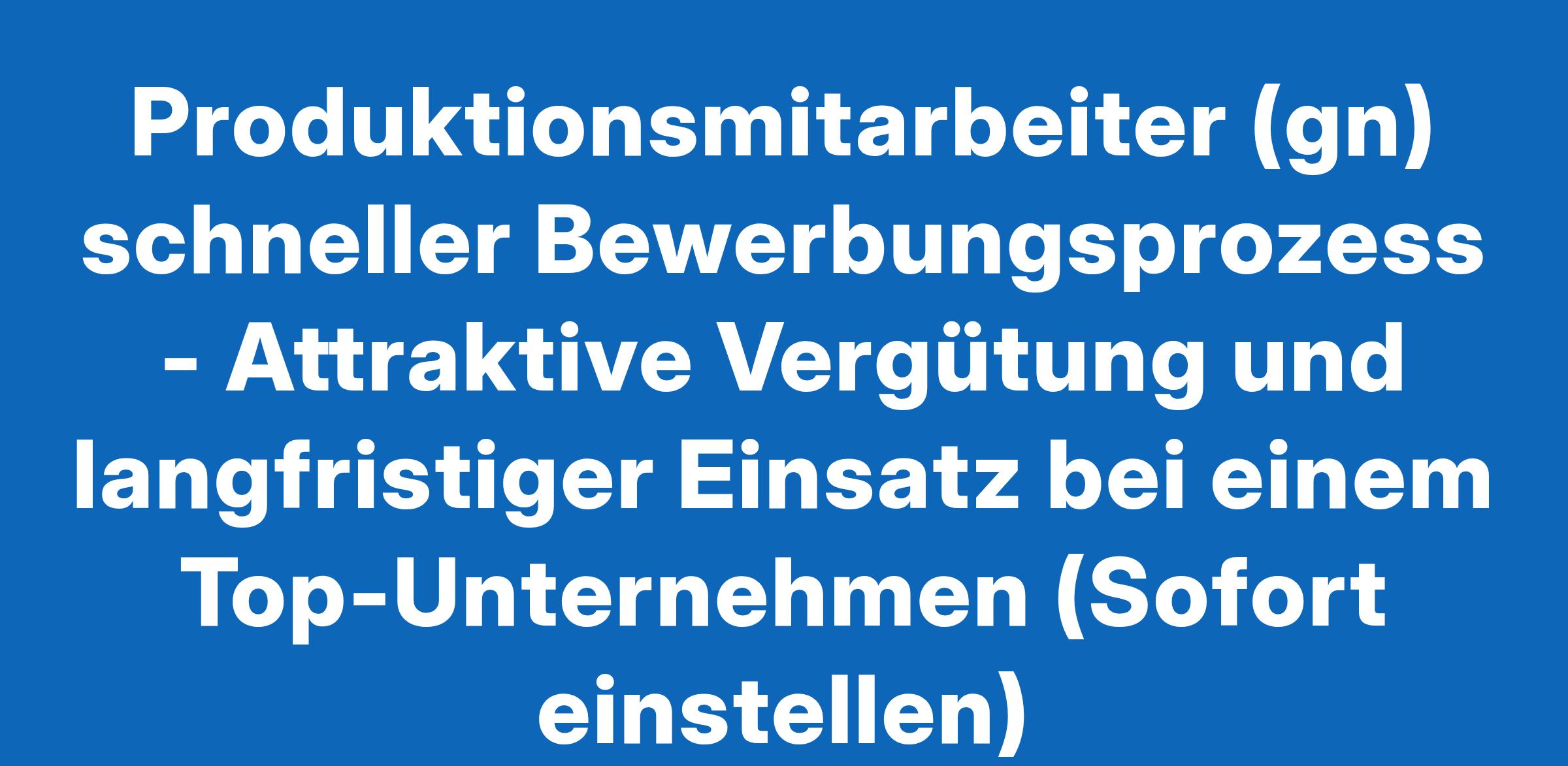 Produktionsmitarbeiter (gn) schneller Bewerbungsprozess - Attraktive Vergütung und langfristiger Einsatz bei einem Top-Unternehmen (Sofort einstellen)