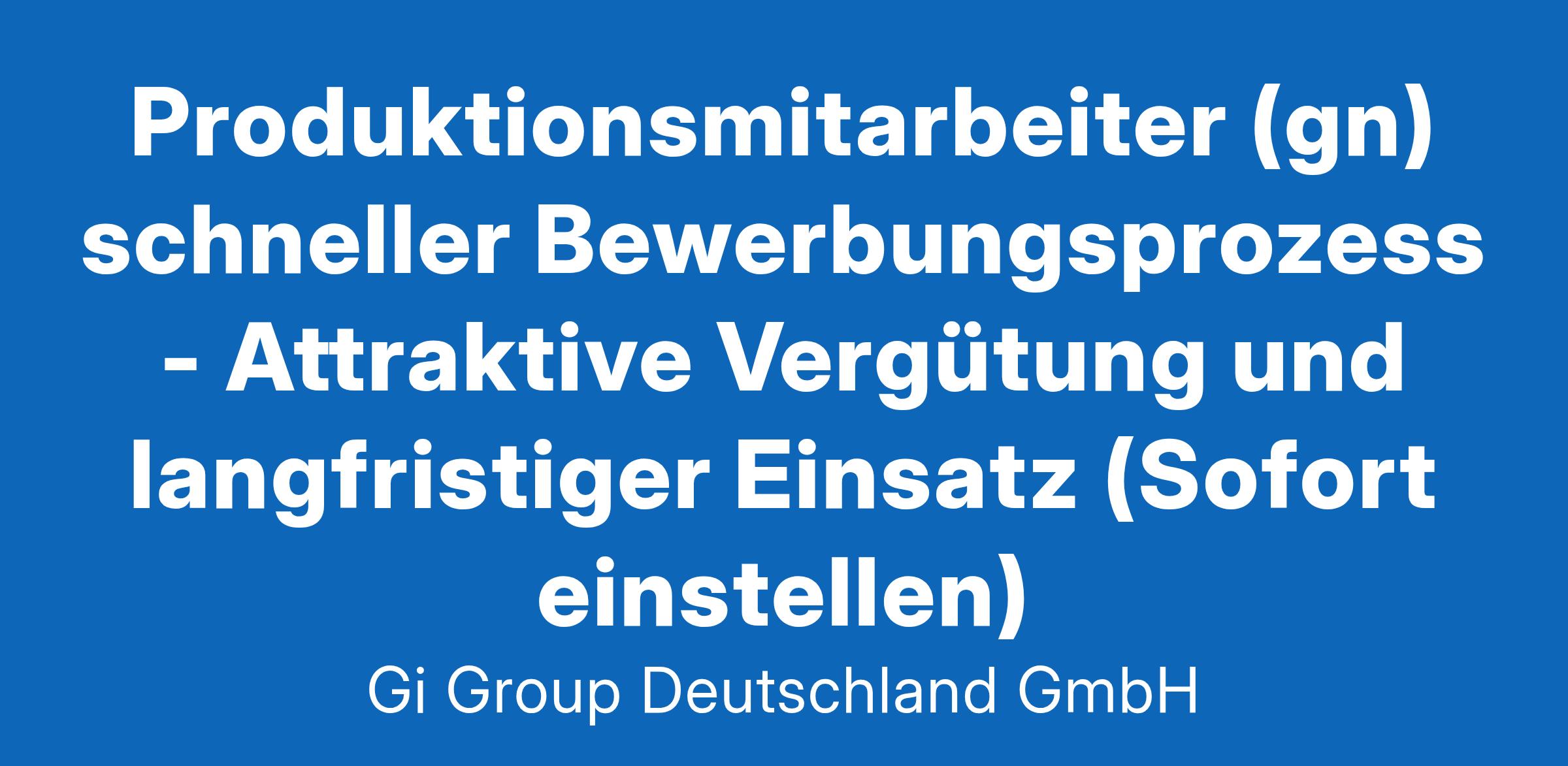 Produktionsmitarbeiter (gn) schneller Bewerbungsprozess - Attraktive Vergütung und langfristiger Einsatz (Sofort einstellen)