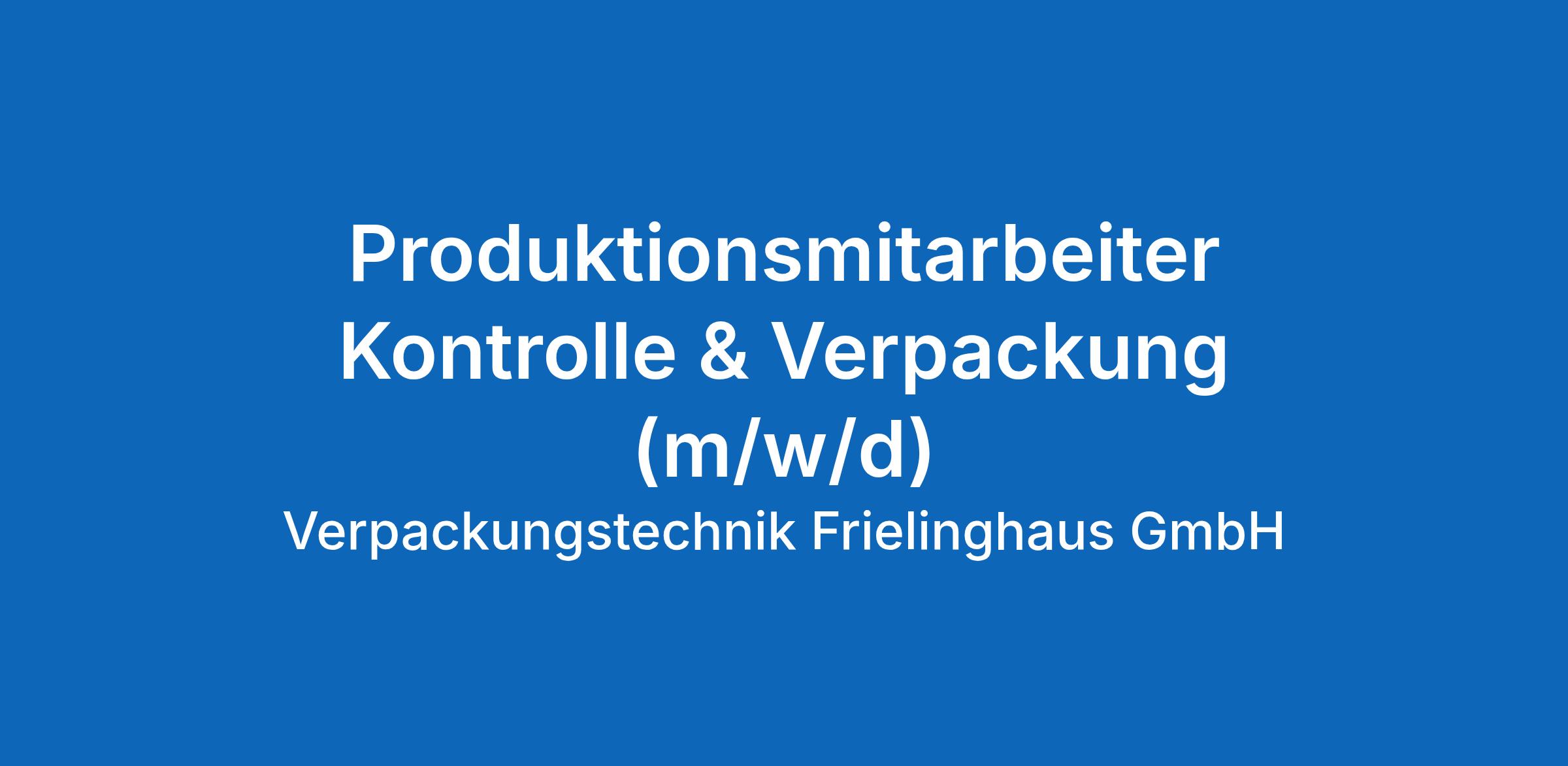Die Verpackungstechnik Frielinghaus GmbH ist ein Hersteller hochwertiger Kunststoffverpackungen. Zur Verstärkung unseres Teams suchen wir ab sofort engagierte Produktionsmitarbeiter (m/w/d).