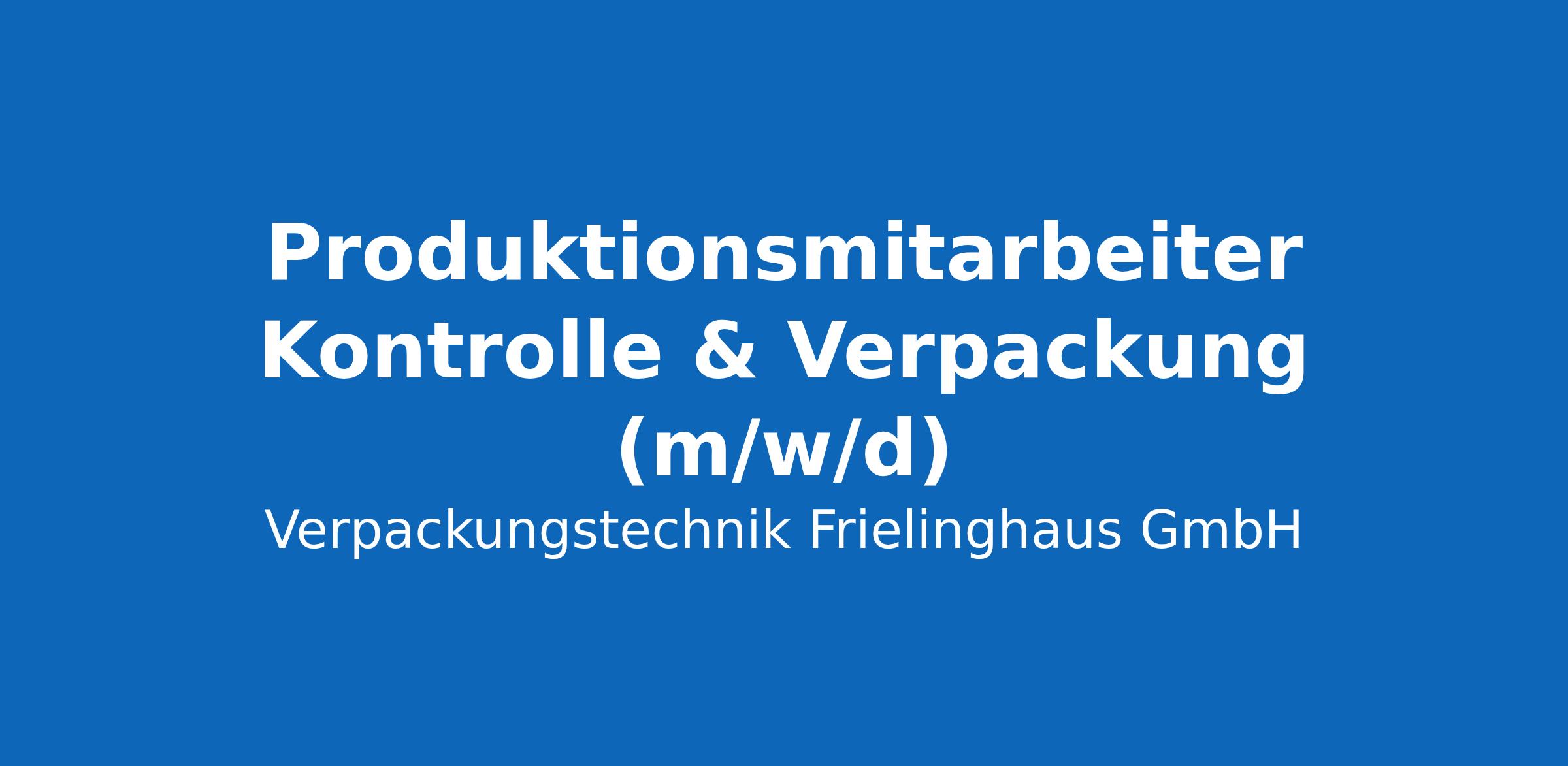 Die Verpackungstechnik Frielinghaus GmbH ist ein Hersteller hochwertiger Kunststoffverpackungen. Zur Verstärkung unseres Teams suchen wir ab sofort engagierte Produktionsmitarbeiter (m/w/d).