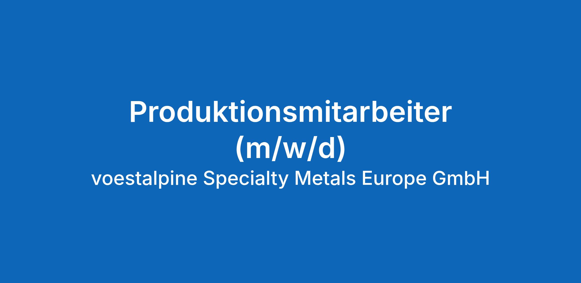 Als Tochtergesellschaft der voestalpine AG ist die voestalpine Specialty Metals Europe GmbH ein etabliertes, wirtschaftlich erfolgreiches und zukunftsorientiertes Unternehmen mit weltweiten Verbindungen im Bereich der Spezialmetalllegierungen und der Metallverarbeitung.