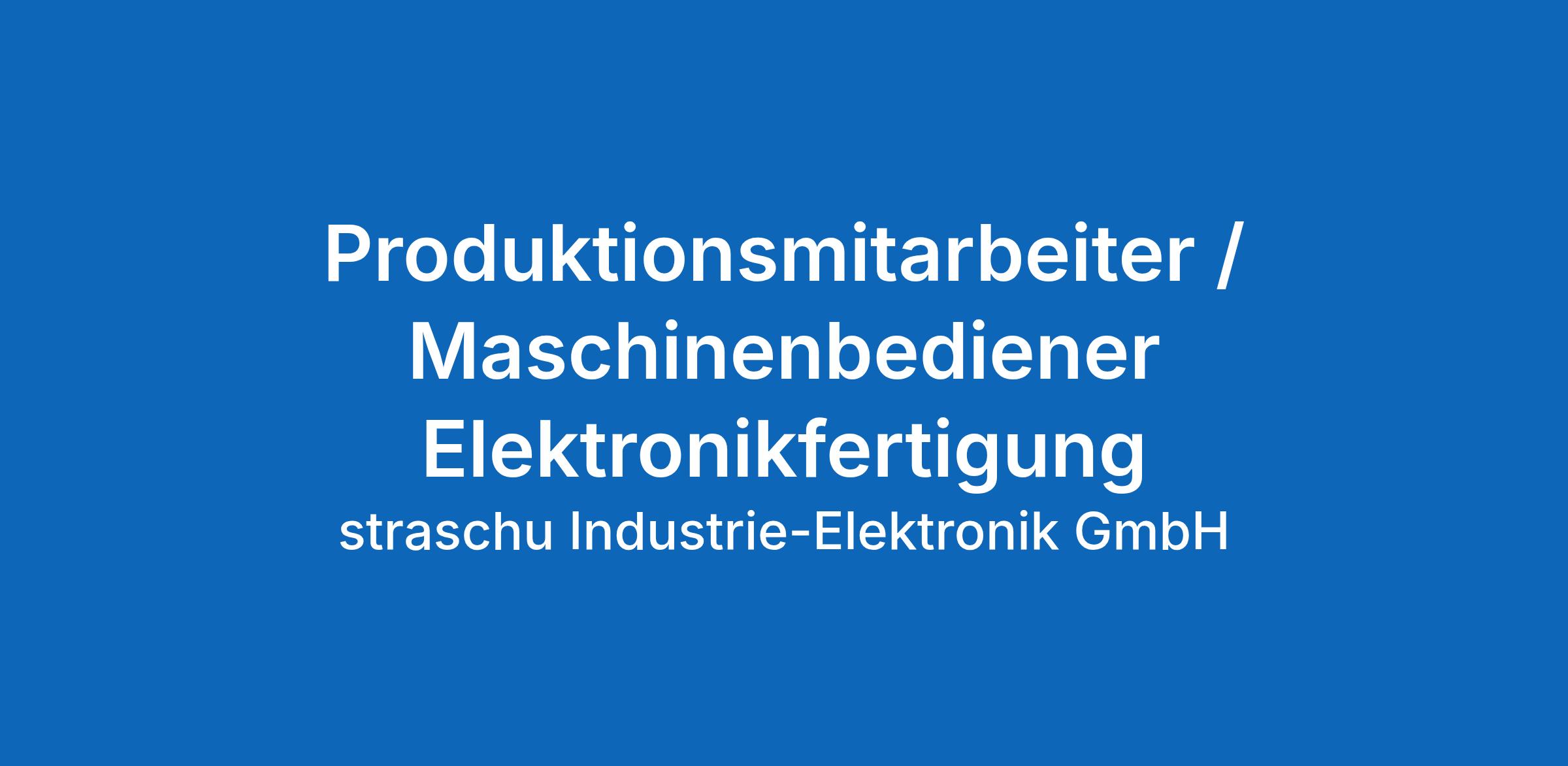 Die straschu Industrie-Elektronik GmbH in Stuhr sucht ab sofort Produktionsmitarbeiter / Maschinenbediener Elektronikfertigung (m/w/d) unbefristet und in Vollzeit.