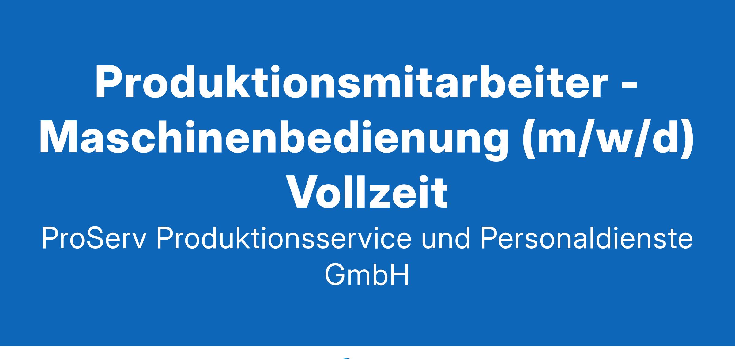 Produktionsmitarbeiter - Maschinenbedienung (m/w/d) Vollzeit