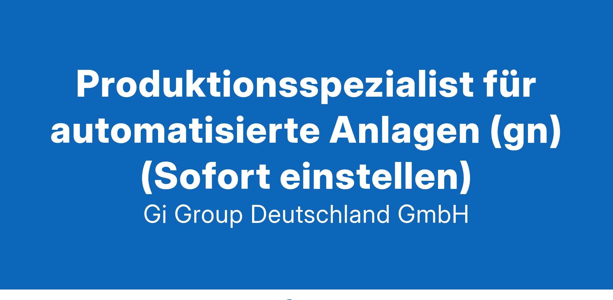 Produktionsspezialist für automatisierte Anlagen (gn) (Sofort einstellen)