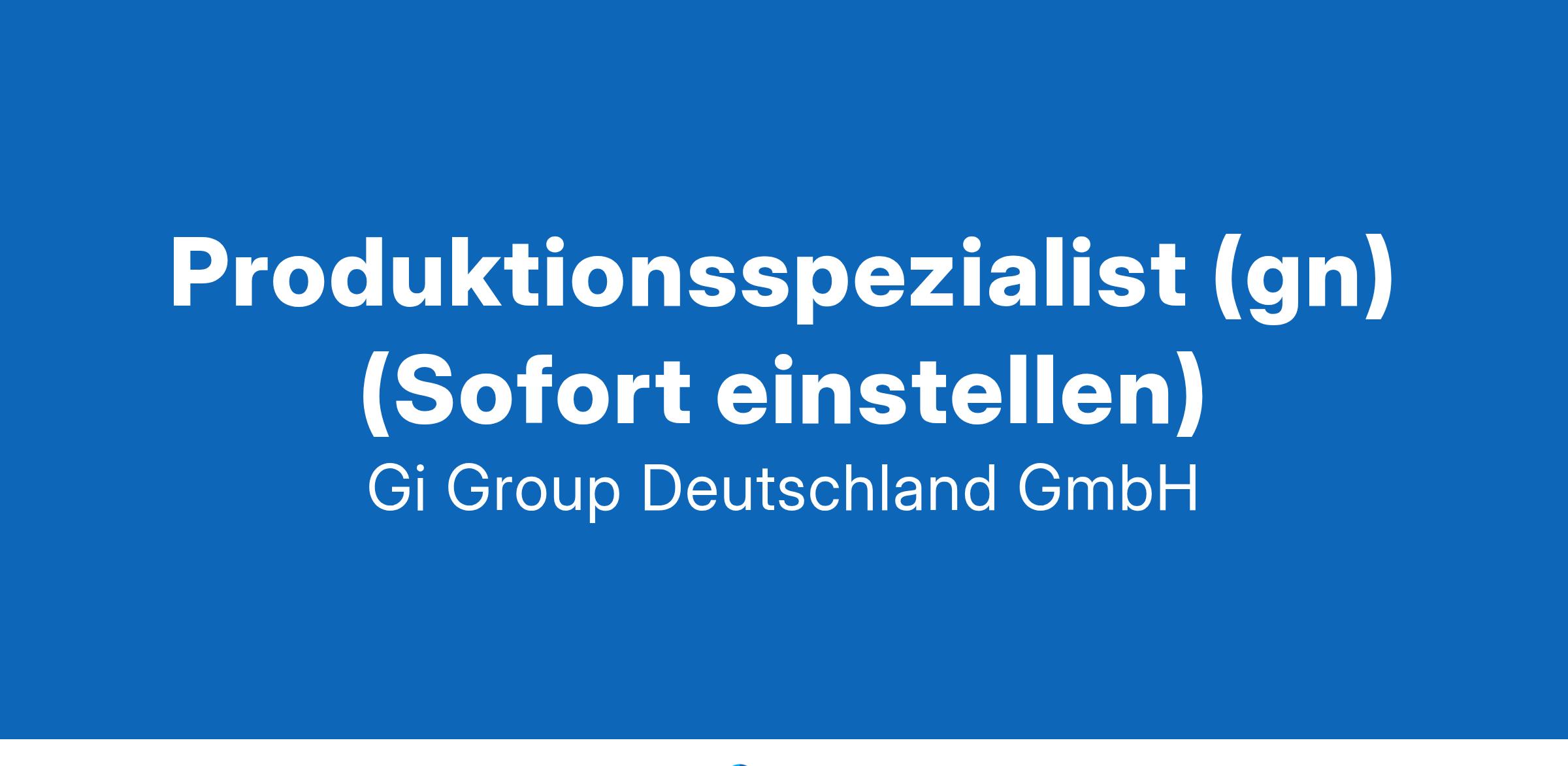 Produktionsspezialist (gn) (Sofort einstellen)