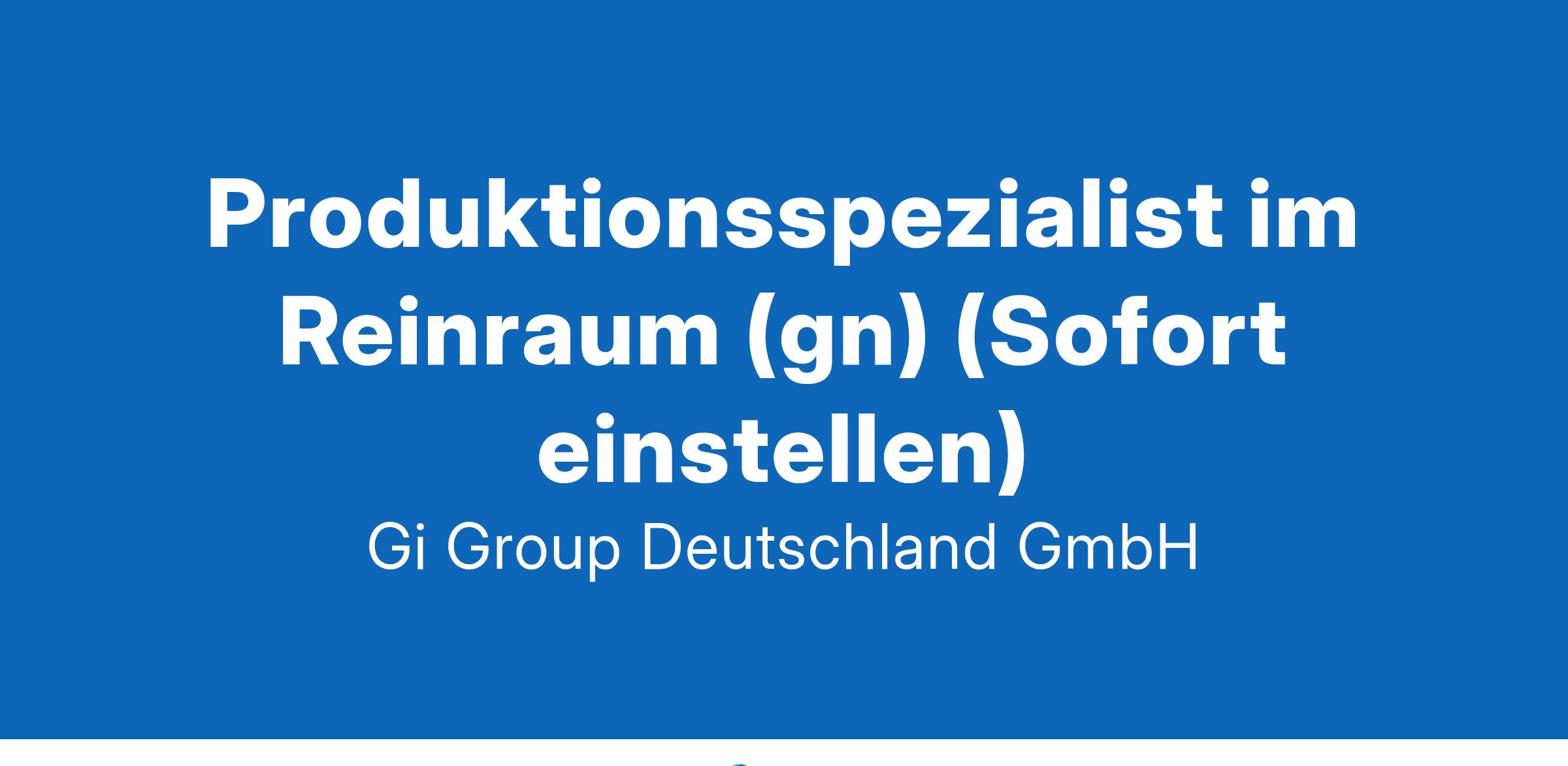 Produktionsspezialist im Reinraum (gn) (Sofort einstellen)