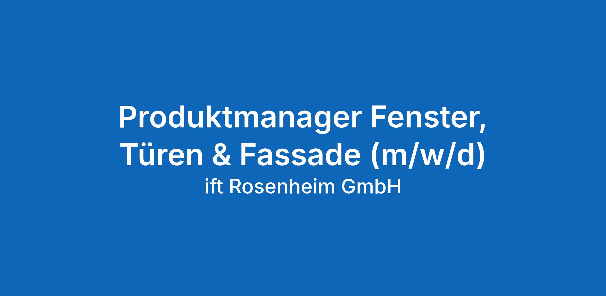 Produktmanager Fenster, Türen & Fassade m | w | d