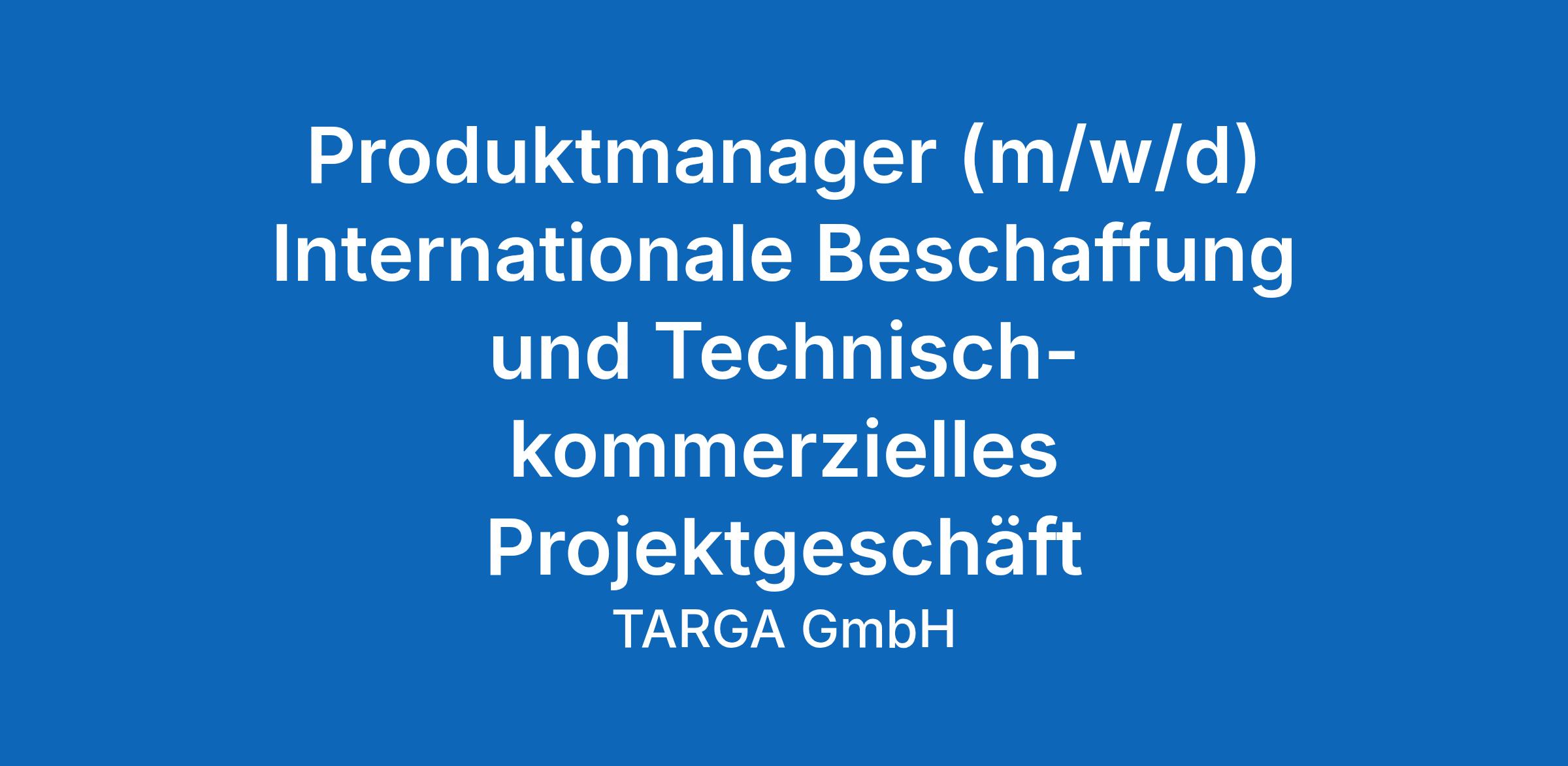 Produktmanager (m/w/d) Internationale Beschaffung und Technisch-kommerzielles Projektgeschäft